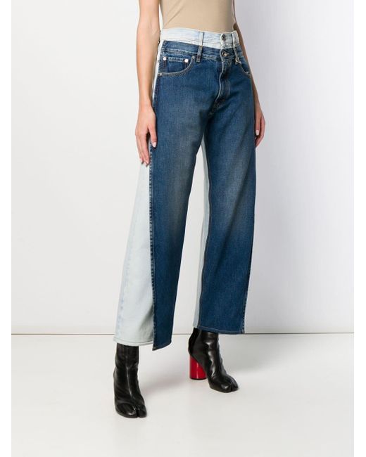Denim jeans van Maison Margiela uitgevoerd in katoen voorzien van knoop-en ritssluiting voorzijde, riemlussen, five-pocket-design en tweekleurig design. Kleur: blauw