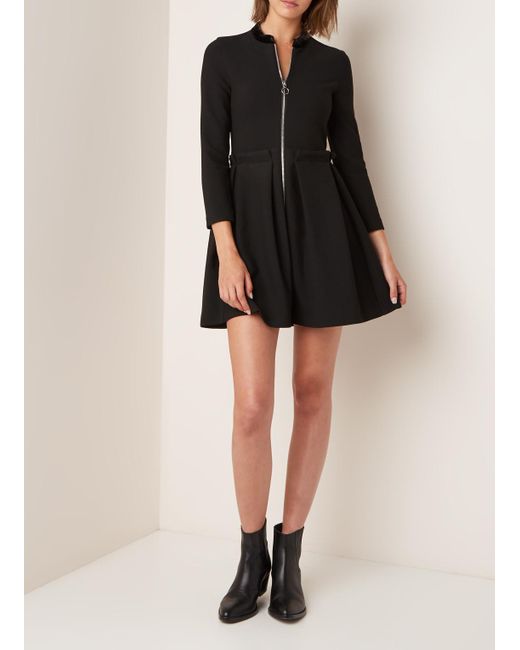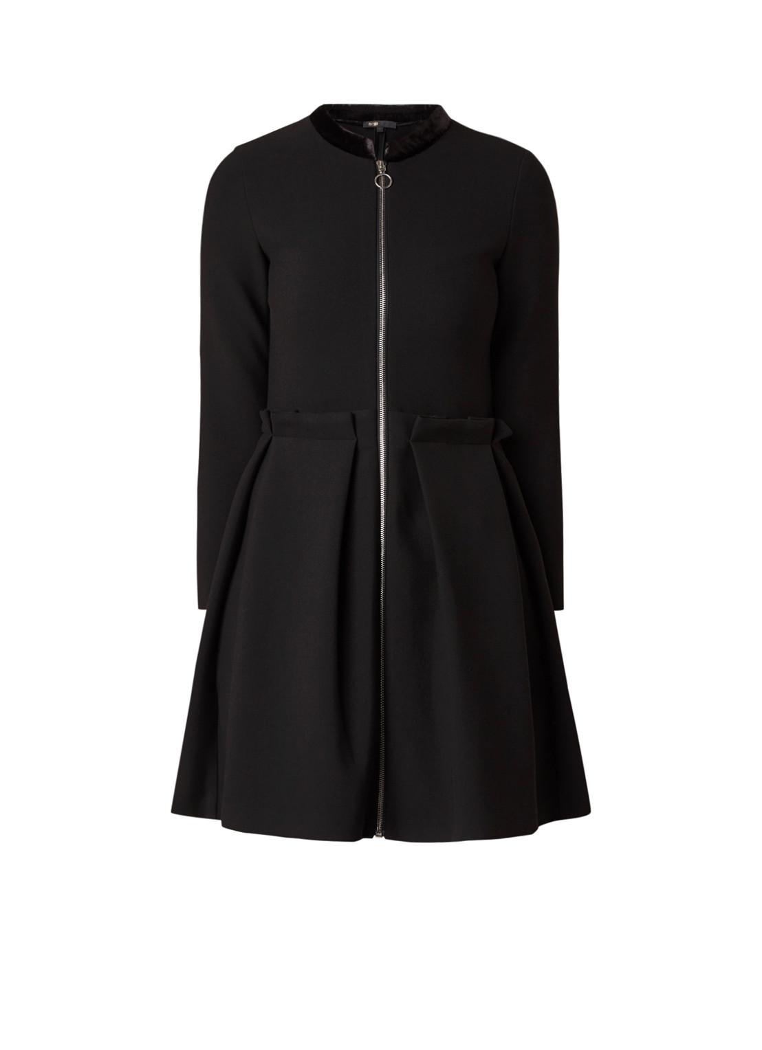 Raneline mini-jurk met plooien. 67% polyester / 29% viscose / 4% elastaan - kraag: 100% polyester - voering zakken: 100% katoen - onderstof: 100% polyester. Kleur: zwart