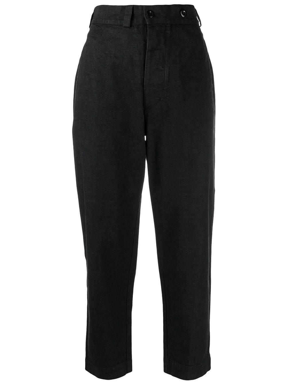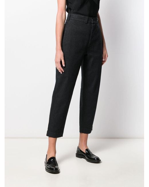High-waist jeans van Margaret Howell uitgevoerd in katoen voorzien van tailleband met riemlussen, ingekorte lengte, knoop-en ritssluiting voorzijde, loose fit, zijzakken en zijzakken. Kleur: zwart