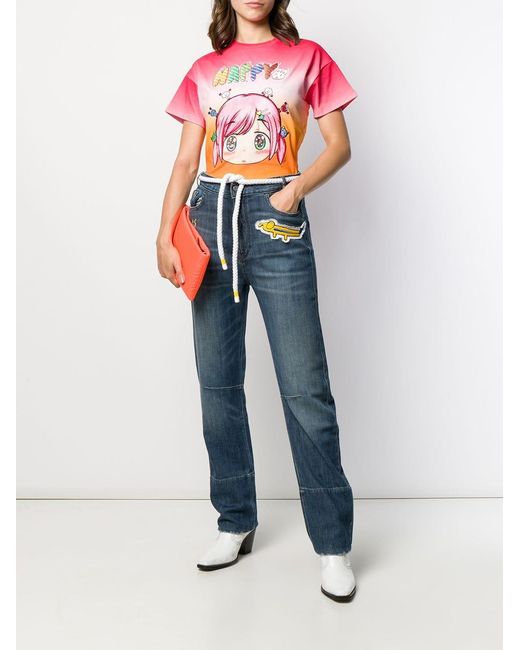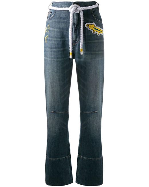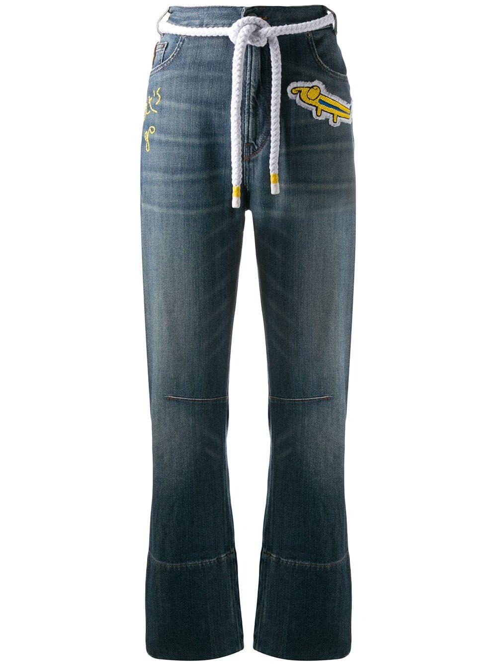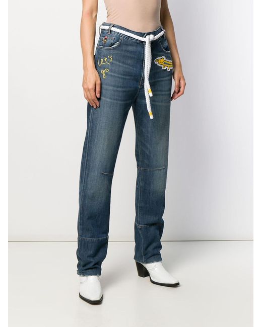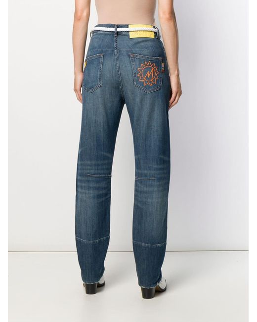 Jeans met borduursel van Mira Mikati uitgevoerd in wol voorzien van high-waist, tailleband met riemlussen, knoop-en ritssluiting voorzijde, rechte pijpen, lange lengte en stonewash- effect. Kleur: blauw