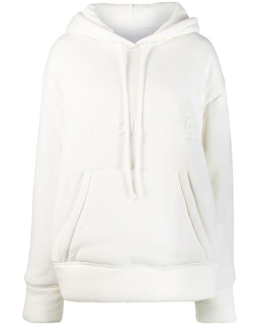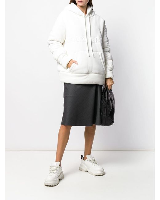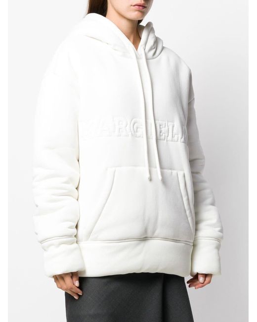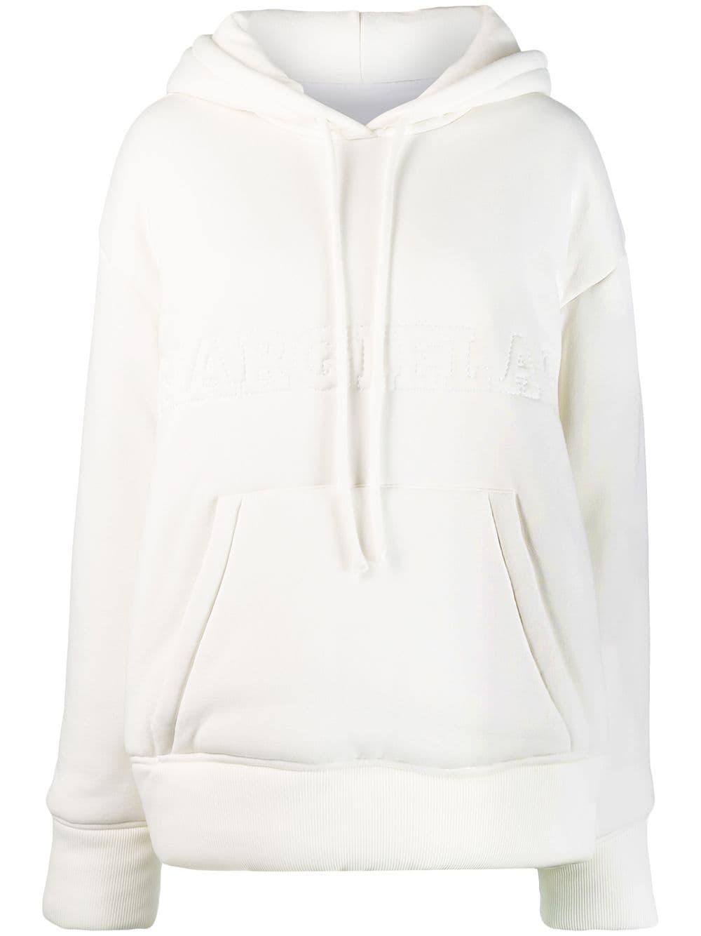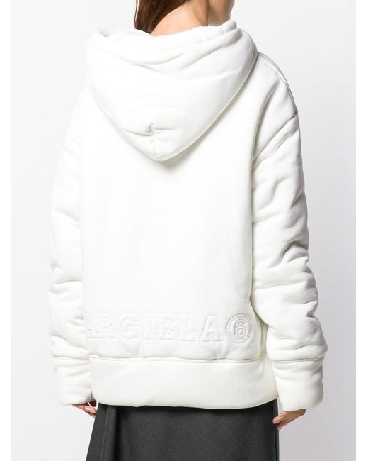 Gevoerde hoodie van MM6 Maison Margiela US uitgevoerd in katoen voorzien van capuchon met trekkoorden, laag geplaatste mouwinzetten, lange mouwen, logo met reliëf, kangaroe zak, geribde zoom en manchetten en oversized model. Kleur: wit