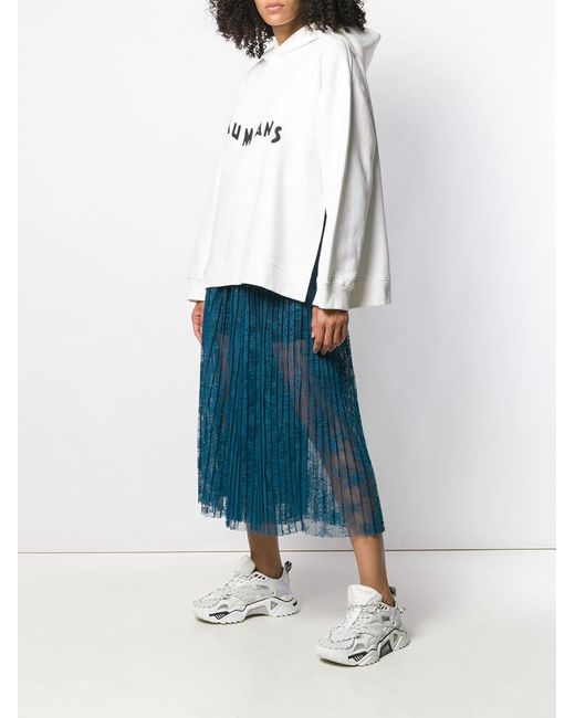 Hoodie met print van MM6 Maison Margiela US uitgevoerd in katoen voorzien van capuchon, lange mouwen, tweekleurig design, losse pasvorm en zijdelingse splitten. Kleur: wit