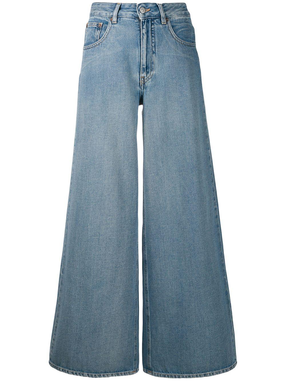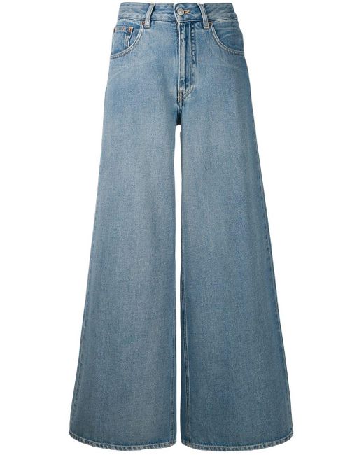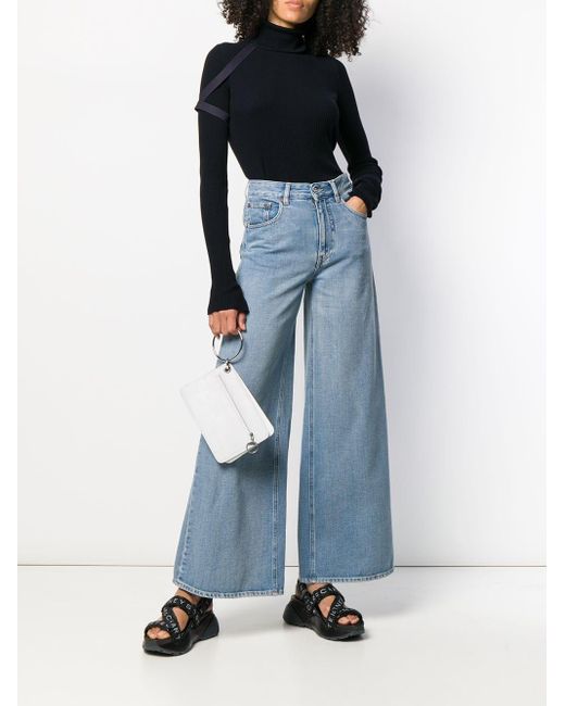 Jeans met wijde pijpen van MM6 Maison Margiela US uitgevoerd in katoen voorzien van high-rise, tailleband met riemlussen, ritssluiting met knoop, five-pocket-design, kenmerkende witte naad achterzijde en standaard lengte. Kleur: blauw