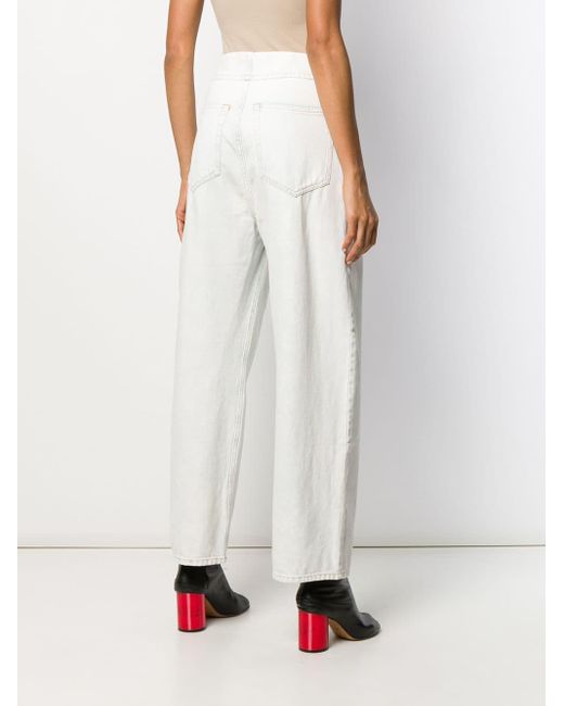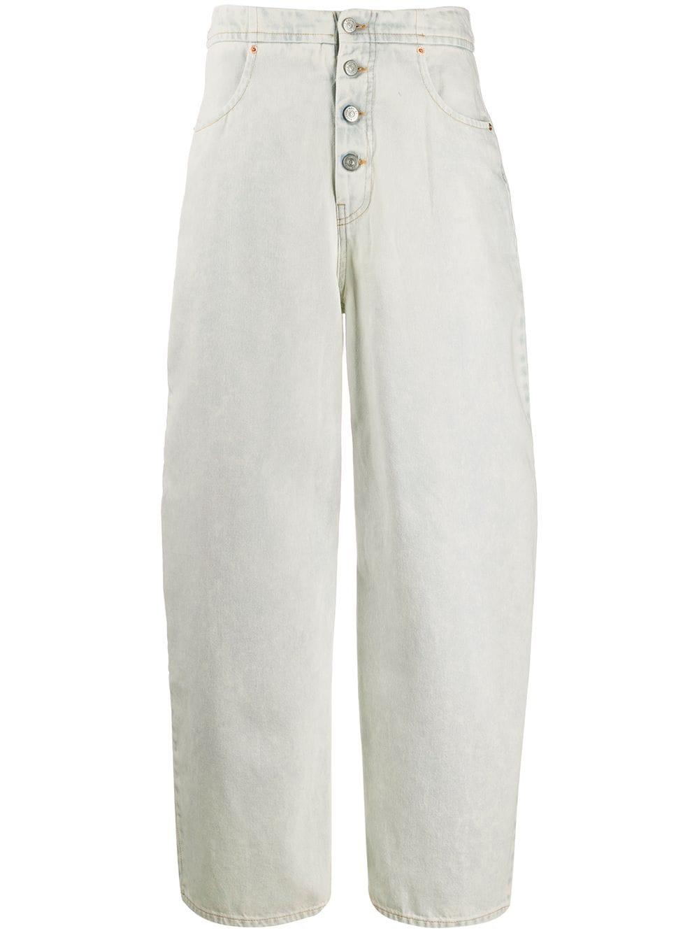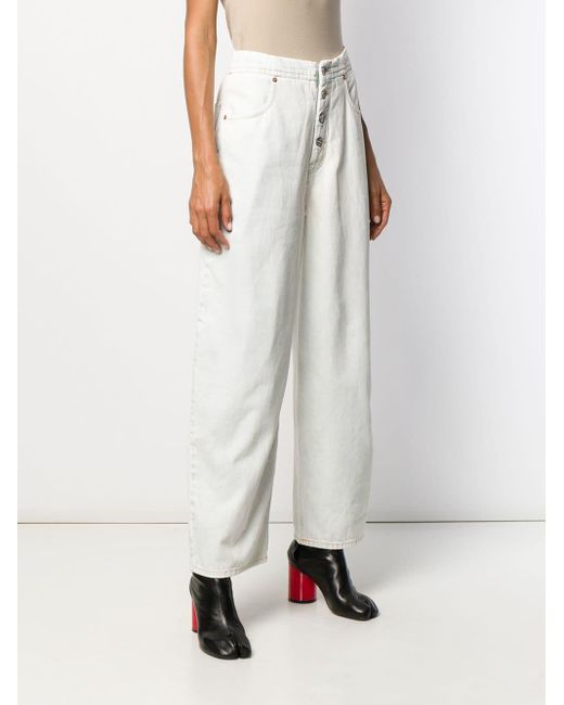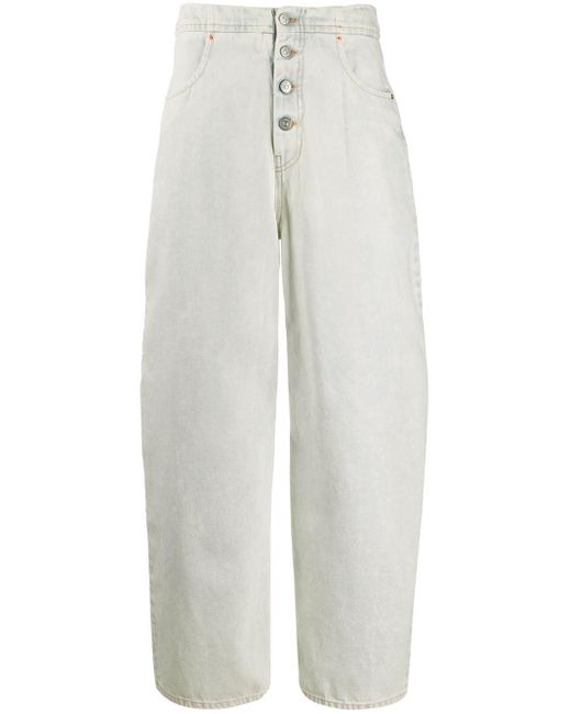 Jeans met wijde pijpen van MM6 Maison Margiela US uitgevoerd in katoen voorzien van high-waist, wijd uitlopende pijpen, knoopsluiting aan de voorzijde, zijzakken, achterzakken en standaard lengte. Kleur: blauw