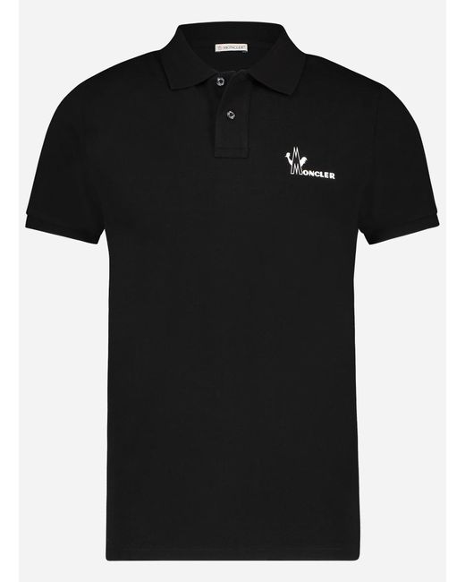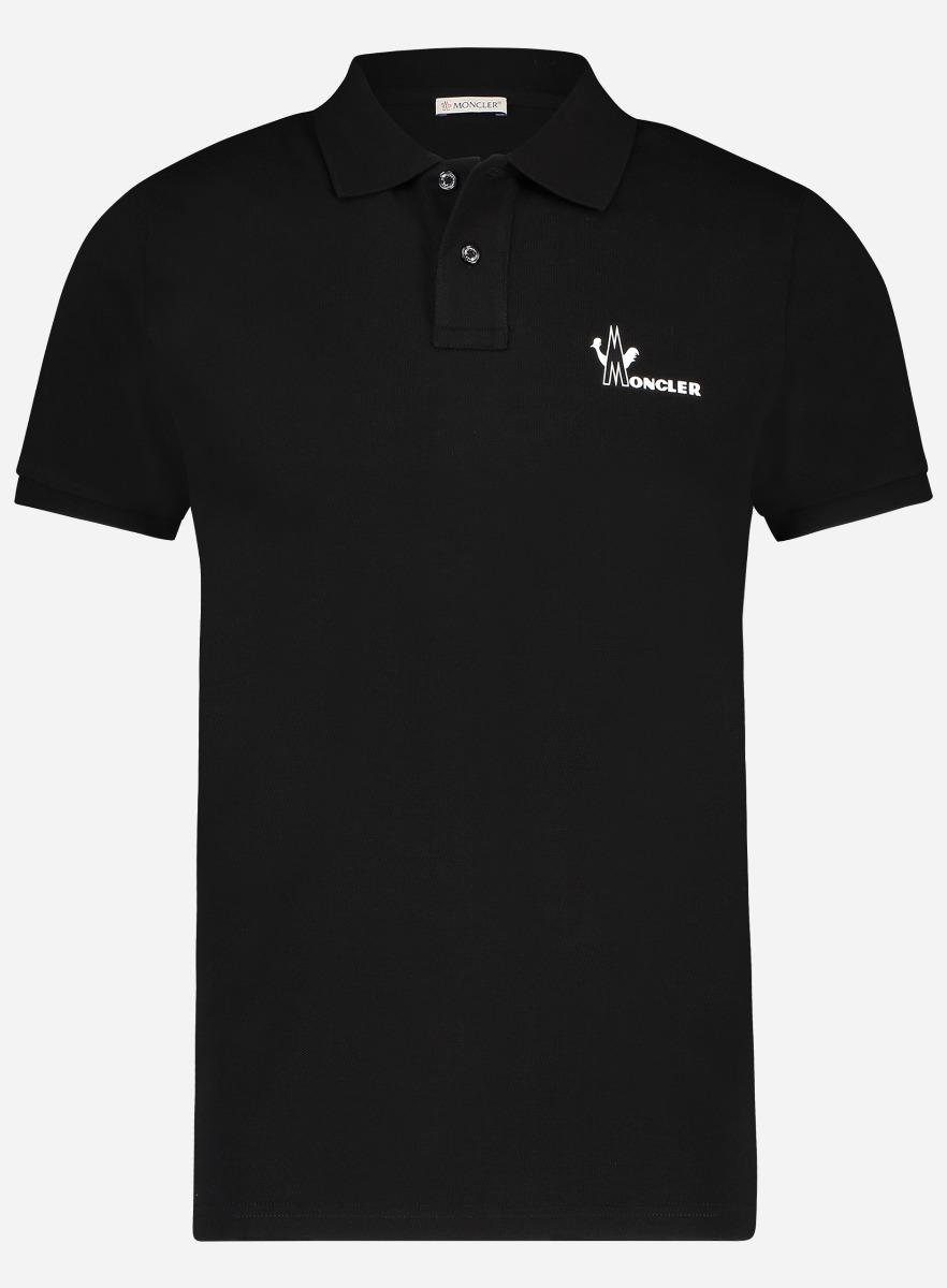 Slim-fit. Korte mouwen polo-Moncler logo op de borst-2-knoops-Ton-sur-ton knopen-Samenstelling: 100% katoen. Kleur: zwart