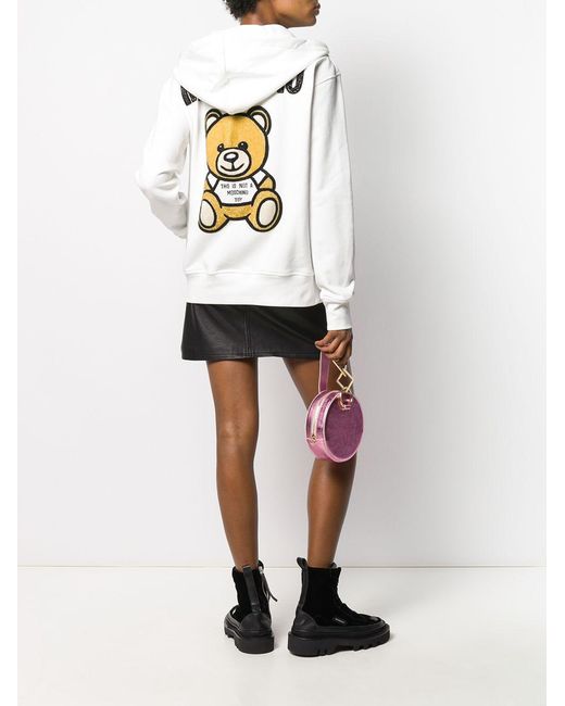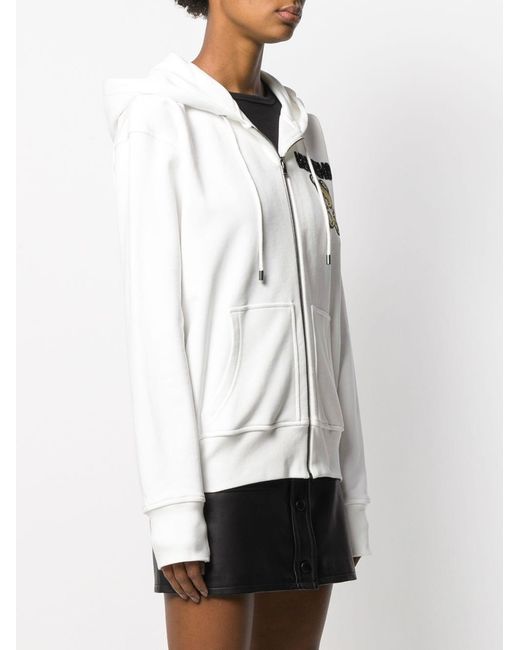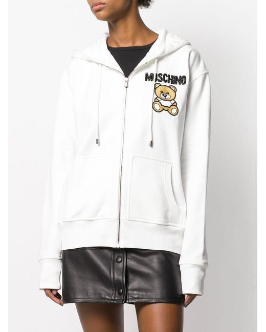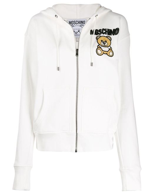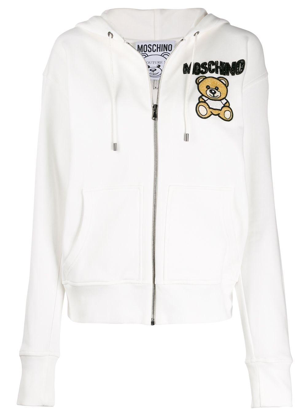 Hoodie met rits van Moschino uitgevoerd in katoen voorzien van capuchon met trekkoord, rits aan de voorkant, kangaroe zakken, lange mouwen en geribde zoom en manchetten. Kleur: wit