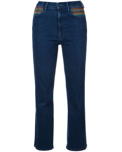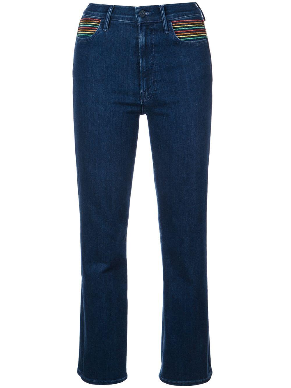 Cropped jeans van Mother voorzien van tailleband met riemlussen, five-pocket-design, knoop-en ritssluiting voorzijde en slim fit. Kleur: zwart