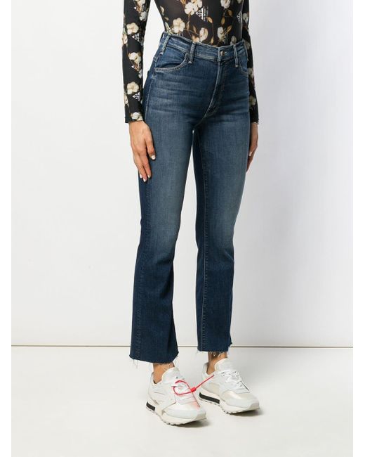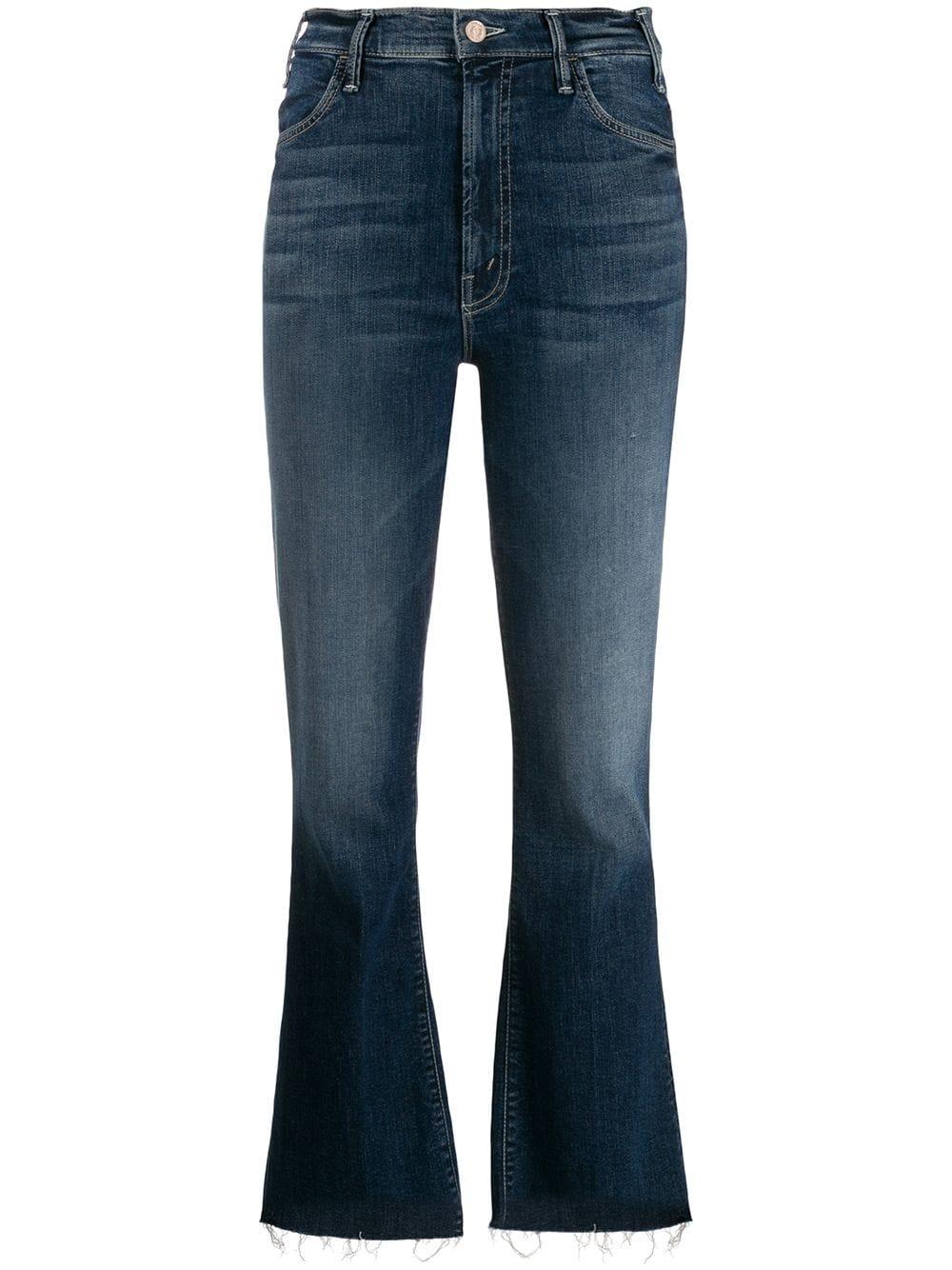 The Hustler jeans van Mother uitgevoerd in gemixt katoen voorzien van high-rise, knoop-en ritssluiting voorzijde, tailleband met riemlussen, zijzakken, achterzakken, vervaagd effect en standaard lengte. Kleur: blauw