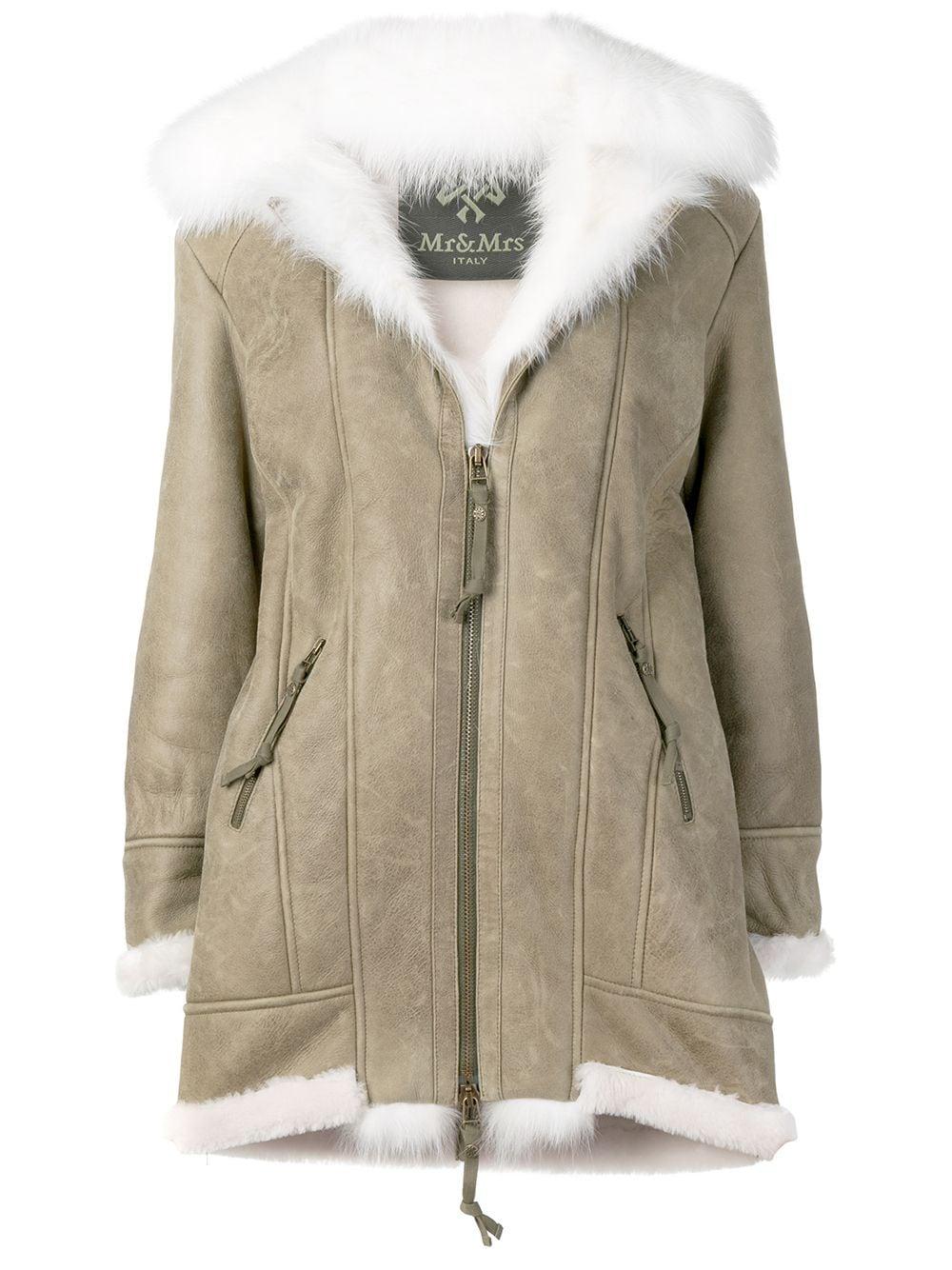 Jas met rits van Mr & Mrs Italy voorzien van omgeslagen kraag, rits aan de voorkant, vossenbont details, zijzakken met ritssluiting en middellange lengte. Dit artikel kan alleen binnen de EU�worden verzonden. Kleur: groen