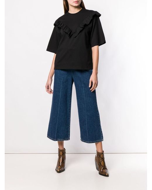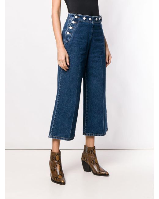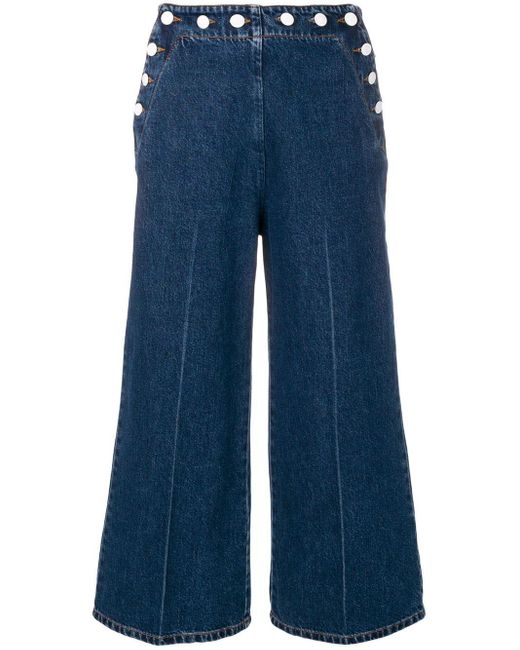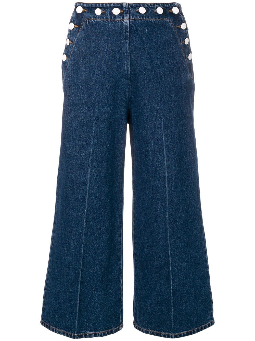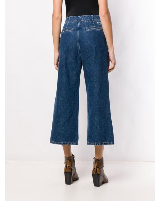 Cropped jeans met wijde pijpen van MSGM uitgevoerd in katoen voorzien van knoopsluiting aan de voorzijde, zijzakken en paspelzakken achterzijde. Kleur: blauw