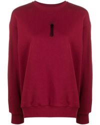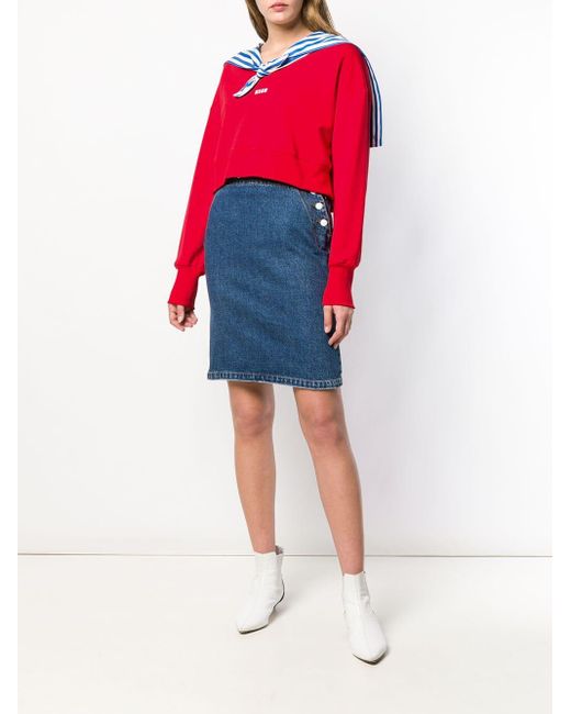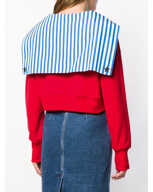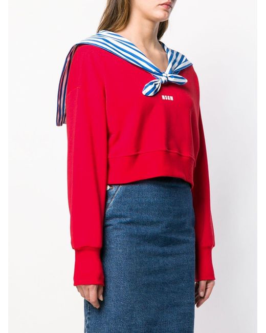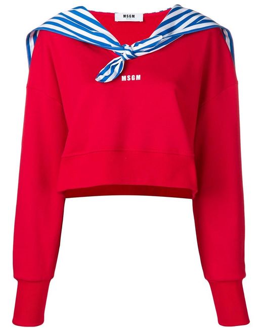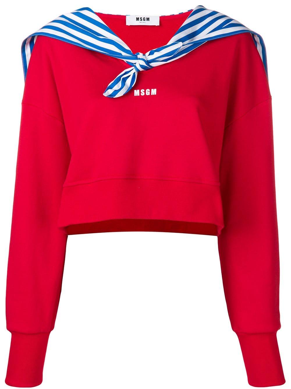 Cropped sweater met vissers detail van MSGM uitgevoerd in katoen voorzien van lange mouwen, loose fit, geribde details en een cropped lengte. Kleur: rood