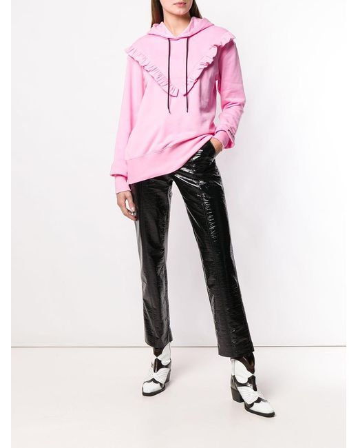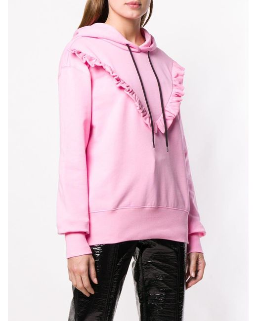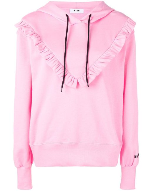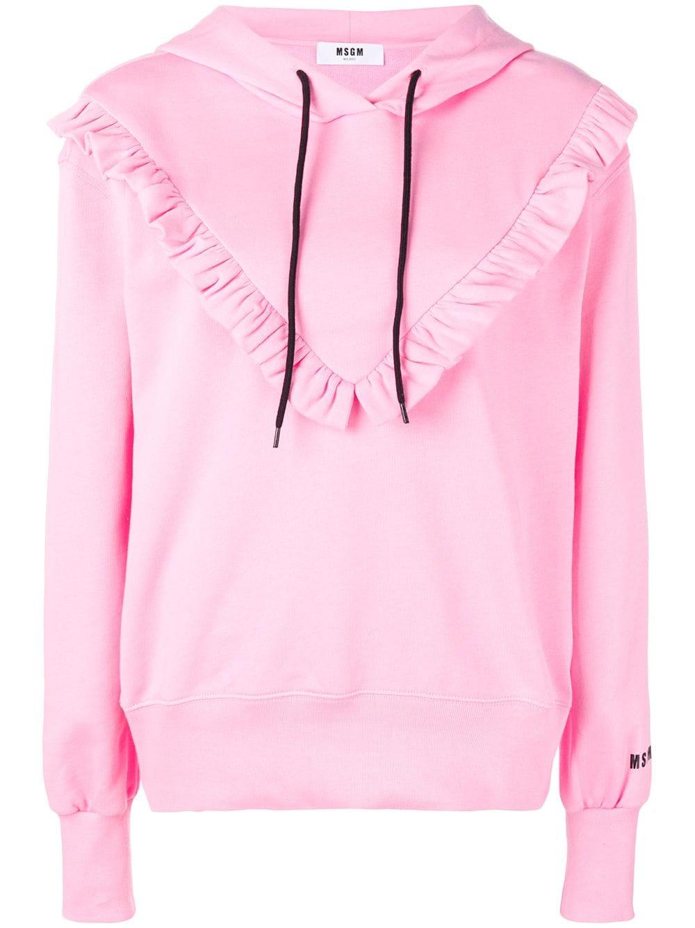 Hoodie met befje van MSGM uitgevoerd in katoen voorzien van capuchon met trekkoord, lange mouwen, geribde zoom en manchetten, logo op de linkerarm en ruches. Kleur: roze