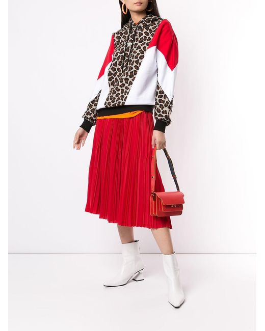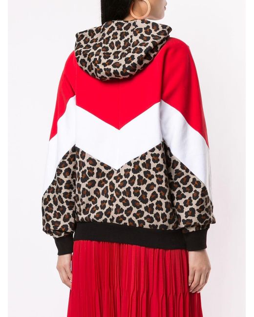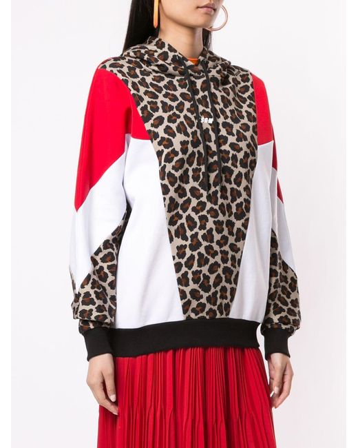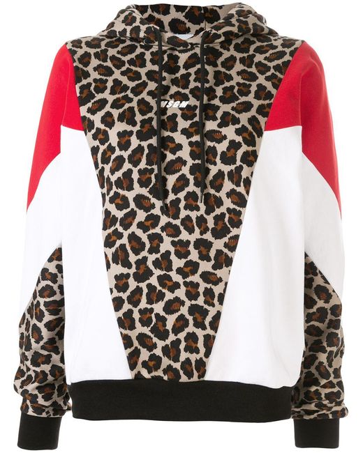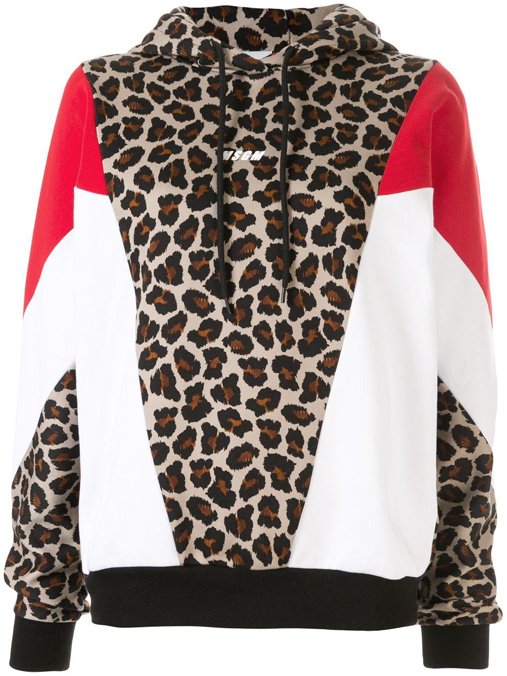 Hoodie met luipaardprint van MSGM uitgevoerd in katoen voorzien van lange mouwen, geribde zoom en manchetten, capuchon met trekkoord, contrasterend colourblock design, luipaardprint en geprint logo aan voorzijde. Kleur: bruin