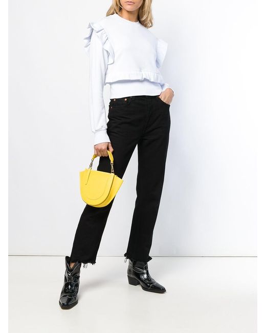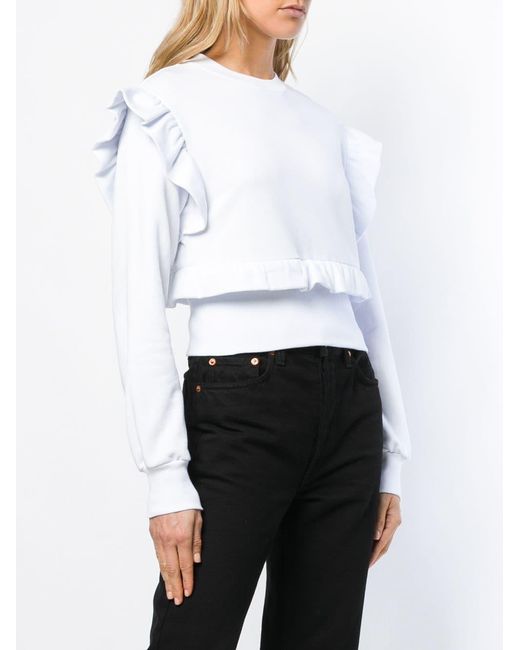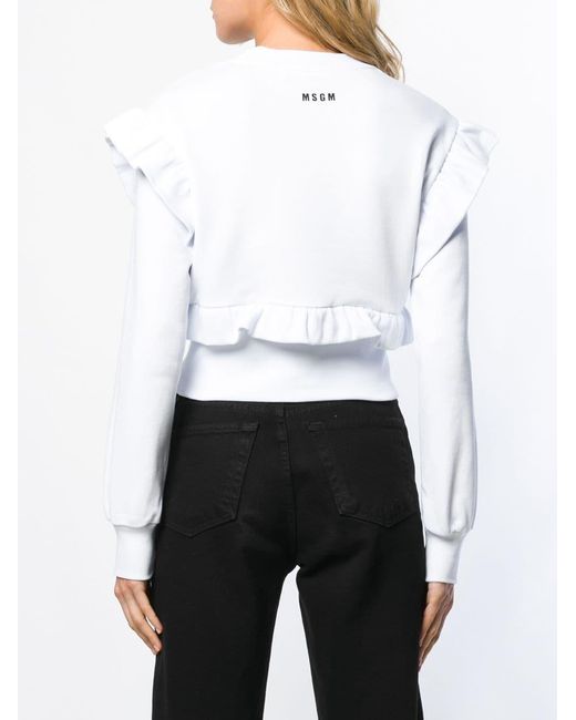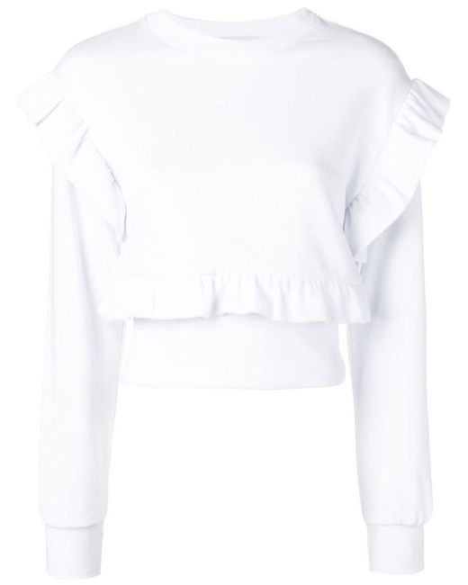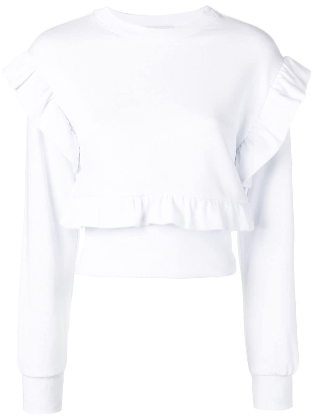 Sweater met ruche van MSGM uitgevoerd in katoen voorzien van geribbelde ronde hals, laag geplaatste mouwinzetten, lange mouwen, geribde zoom en manchetten, getailleerd en geprint logo aan achterzijde. Kleur: wit