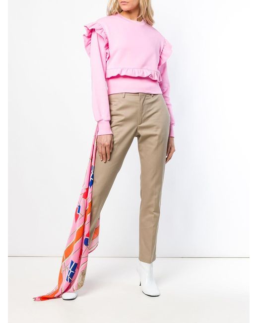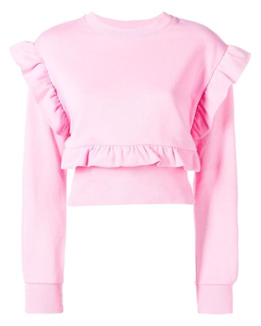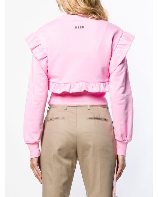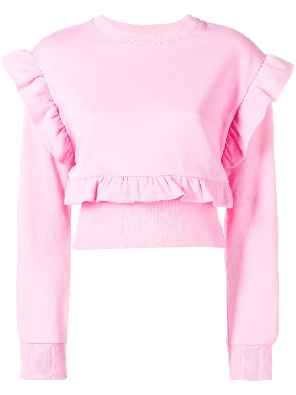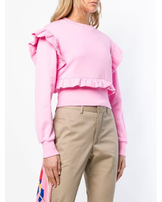 Sweater met ruche van MSGM uitgevoerd in katoen voorzien van geribbelde ronde hals, laag geplaatste mouwinzetten, lange mouwen, geribde zoom en manchetten, geprint logo aan achterzijde en strakke taille. Kleur: roze
