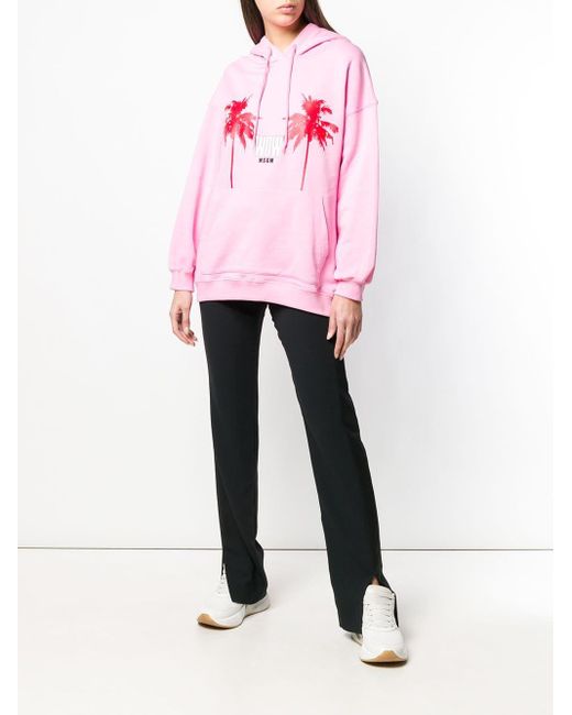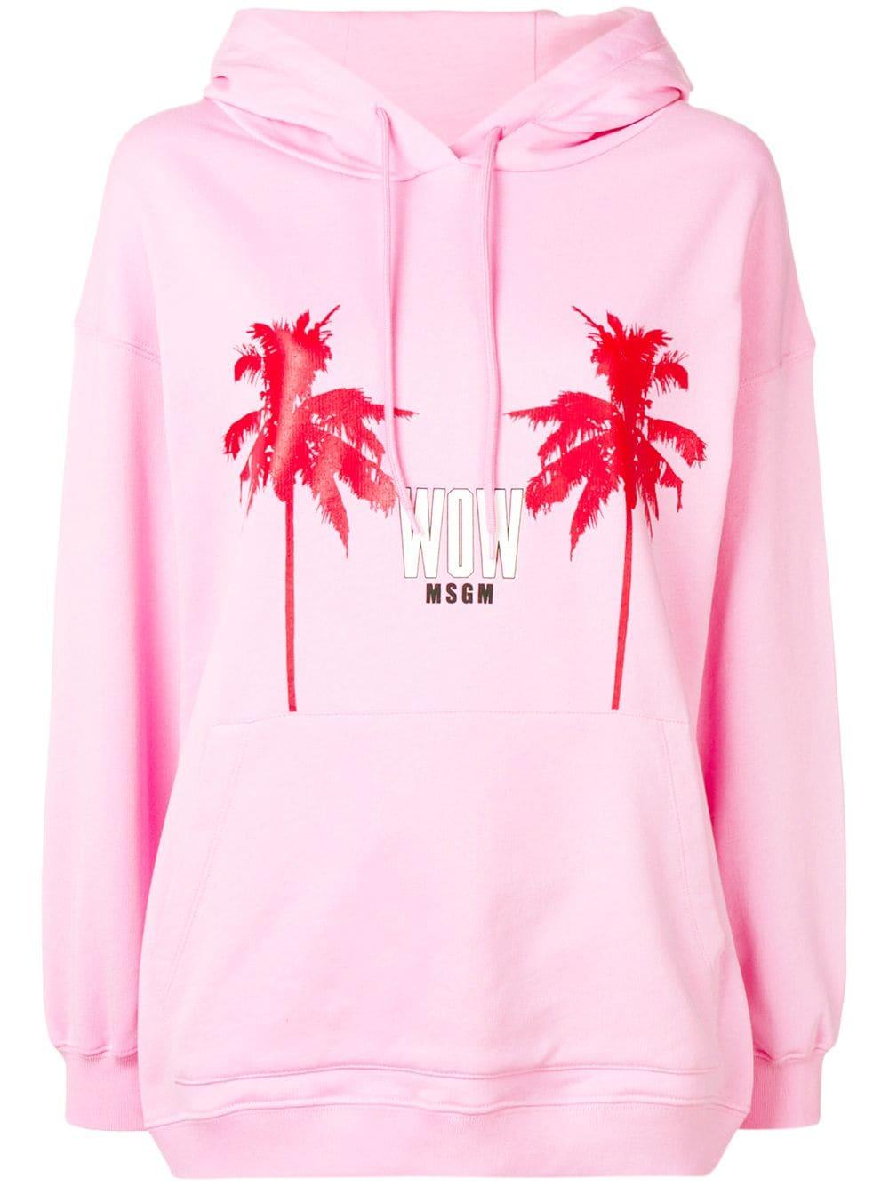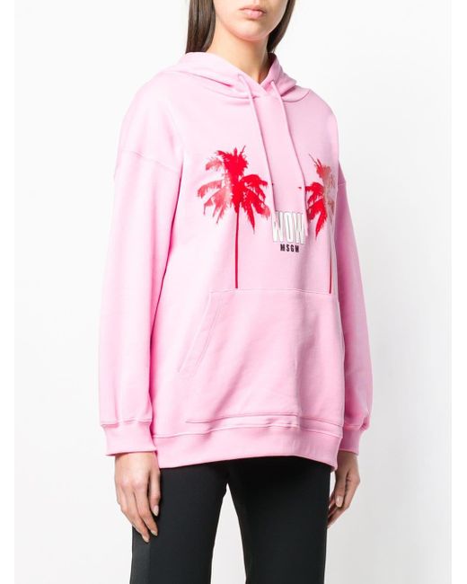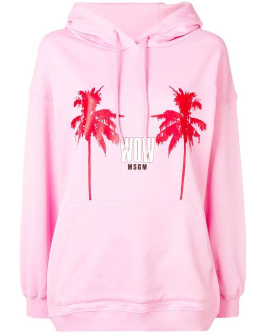 Hoodie met palmboom print van MSGM uitgevoerd in katoen voorzien van capuchon met trekkoord, lange mouwen en geribde zoom en manchetten. Kleur: roze