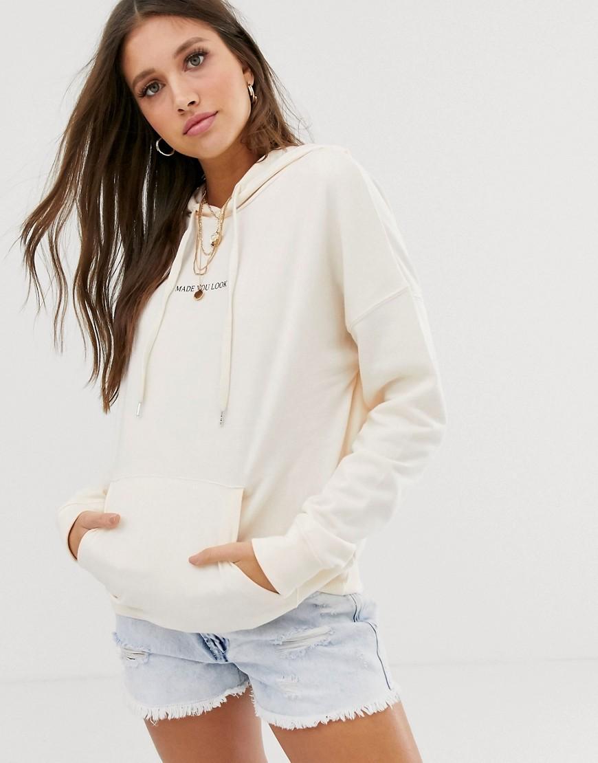 Hoodie Met Made You Look-tekst in het wit voor dames