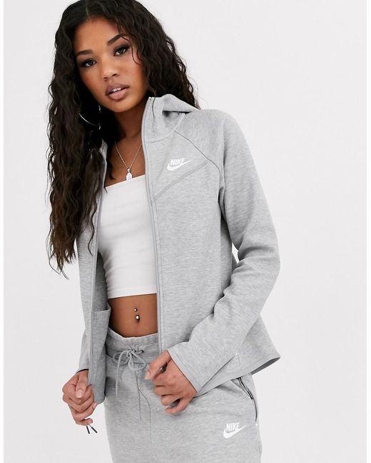 Tech Fleece - Hoodie Met Rits In Grijs in het zwart voor dames