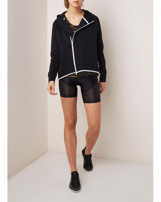 Tech fleece sweatvest met ritszakken en capuchon. 69% katoen / 31% polyester. Kleur: zwart
