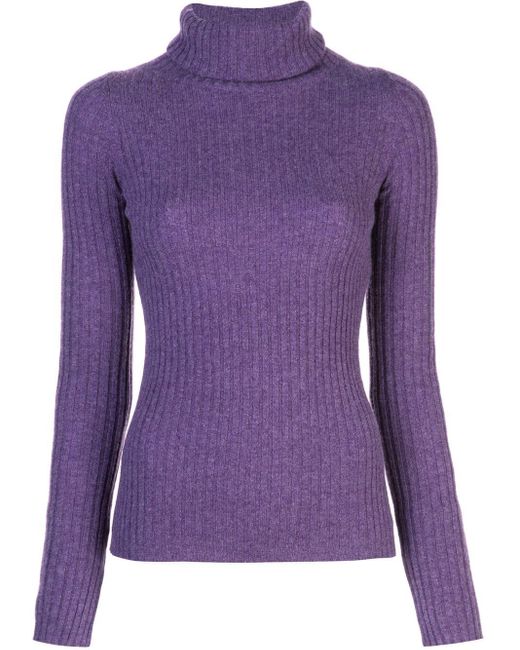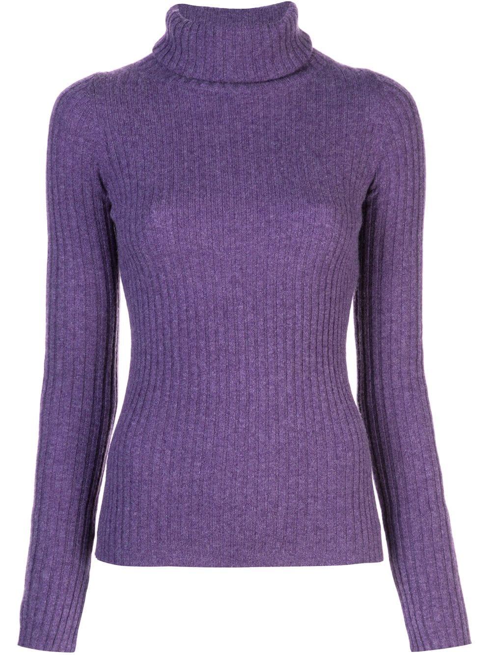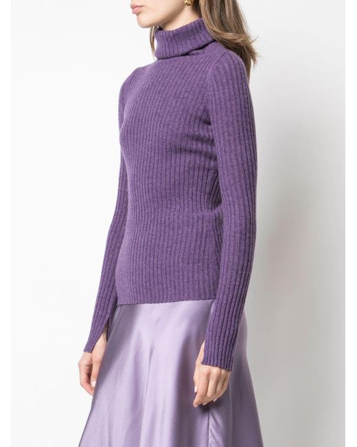 Ribgebreide sweater van Nili Lotan uitgevoerd in kasjmier voorzien van geribde coltrui, mouwen met split, lange mouwen en nauwsluitend. Kleur: paars