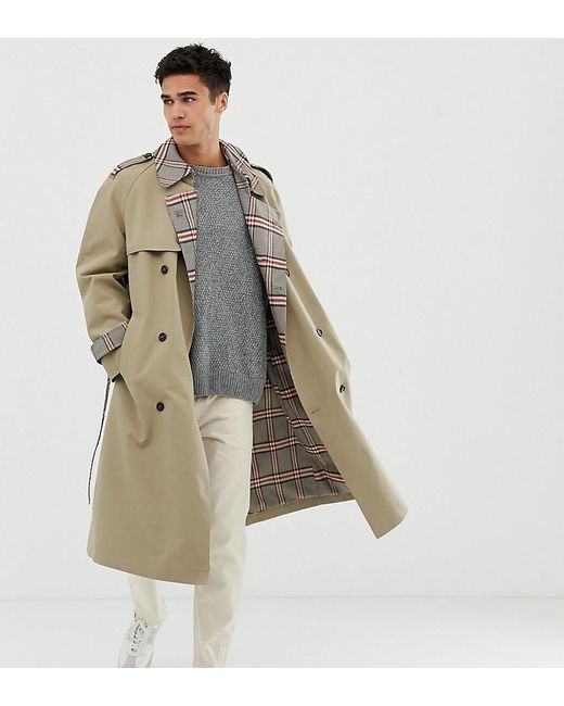 Trenchcoat Met Geruite Voering In Kiezelkleur voor heren
