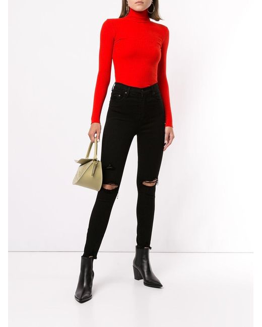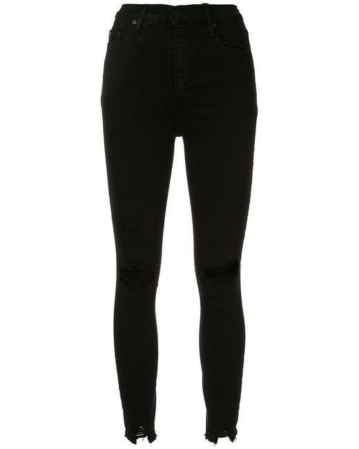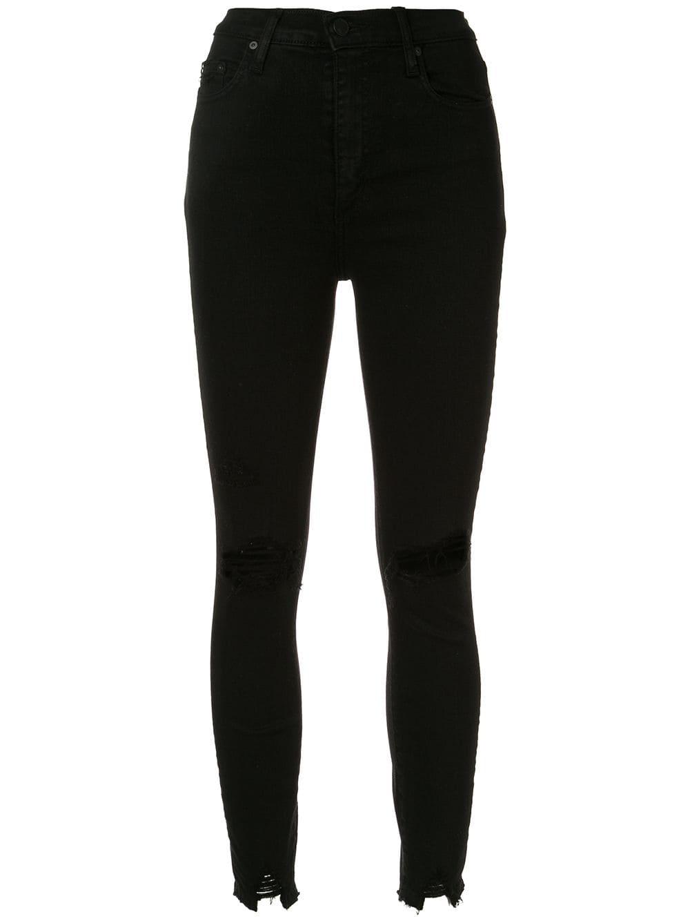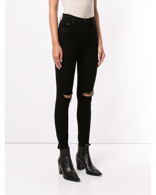 Skinny jeans van Nobody Denim voorzien van high-rise, tailleband met riemlussen, ritssluiting met knoop, five-pocket-design, distressed-effect, ingekorte lengte en onafgewerkte randen. POSITIVELY CONSCIOUS: We hebben onze krachten gebundeld met het ethische bedrijf Good On You, zodat u makkelijker een duurzame keuze kunt maken. Dit artikel is van een merk wat hoog scoort aan de hand van hun criteria. Kleur: zwart