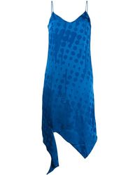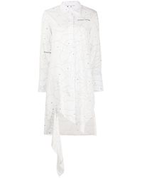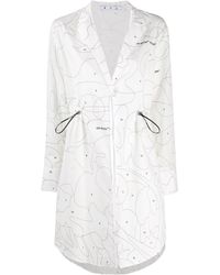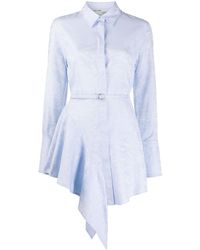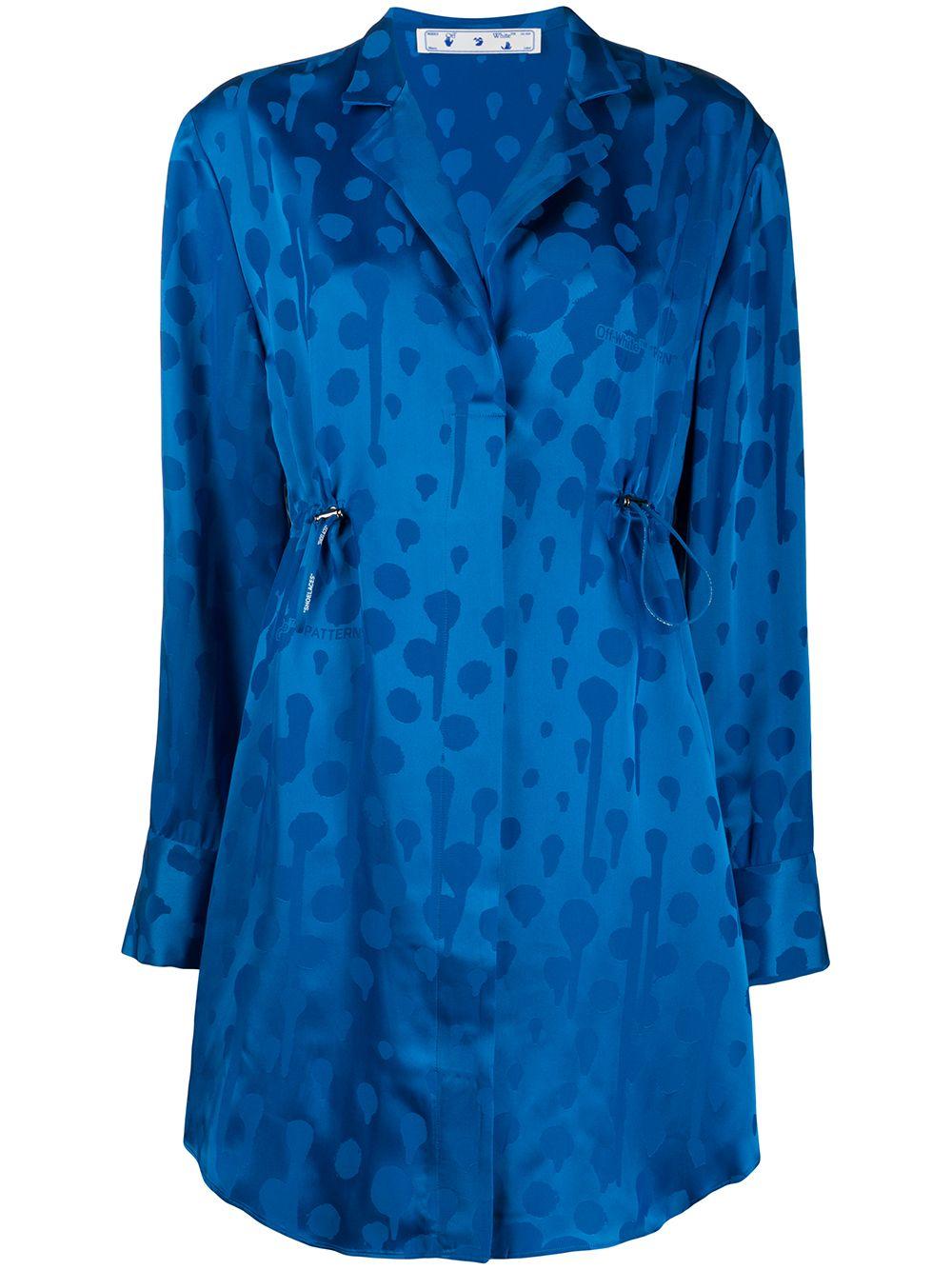 Blousejurk met geweven jacquard van OFF-WHITE voorzien van vallende revers , lange mouwen, knoopsluiting aan de voorzijde, taille met trekkoorden, jacquard uitvoering en afgeronde zoom. Kleur: blauw