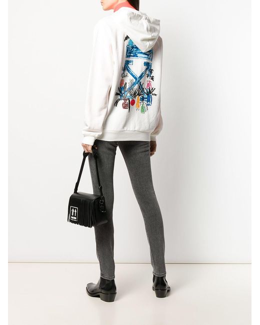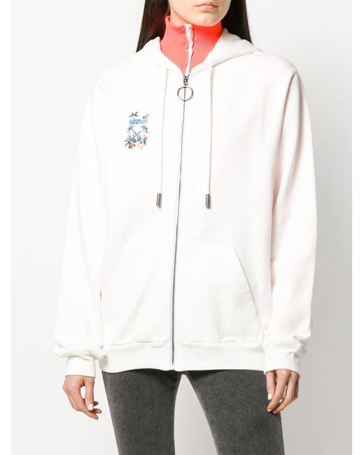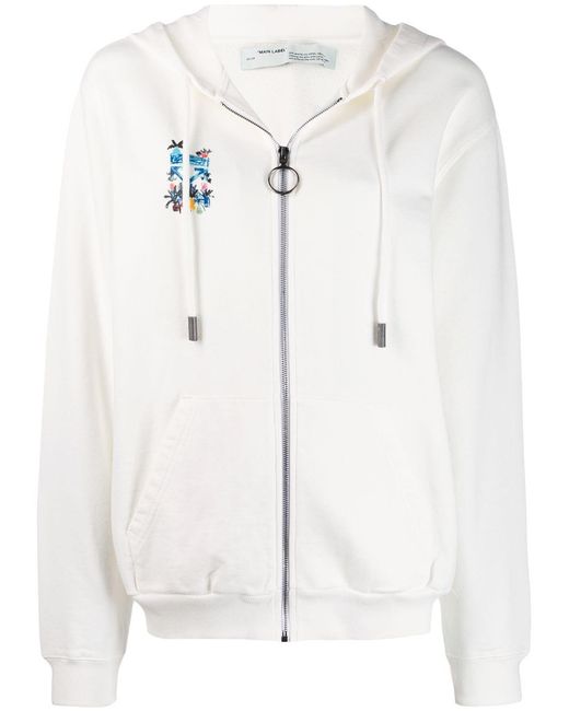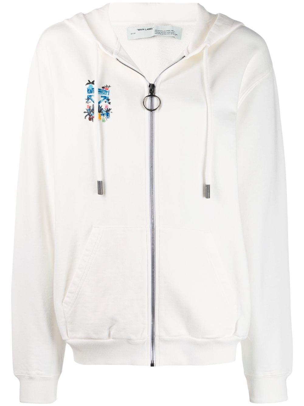 Hoodie met print van OFF-WHITE uitgevoerd in katoen voorzien van capuchon met trekkoorden, rits aan de voorkant, print op de voorkant, relaxte pasvorm, kangaroe zakken, lange mouwen en print aan de achterzijde. Kleur: wit