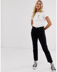 Jeans Met Bloem Applicatie in het zwart voor dames