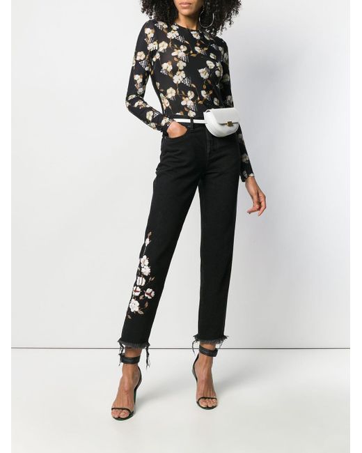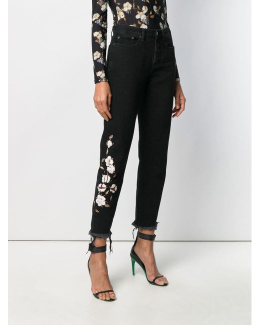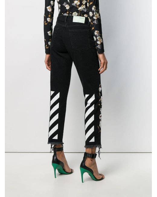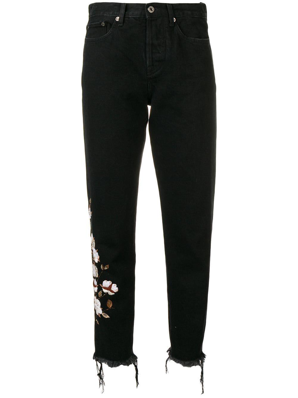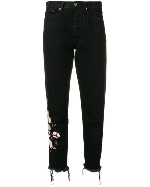 Jeans met bloem applicatie van OFF-WHITE uitgevoerd in katoen voorzien van mid-rise, knoop-en ritssluiting voorzijde, riemlussen, five-pocket-design en gerafelde zoom. Dit artikel valt klein, kies een halve maat groter. Kleur: zwart