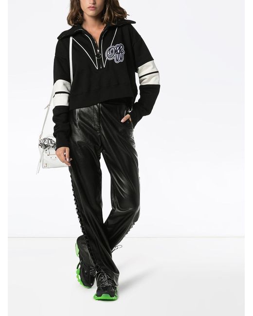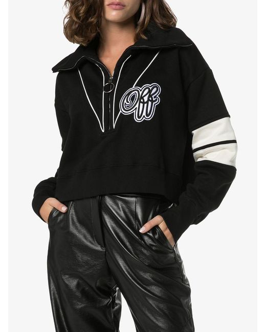Sweater met logo van OFF-WHITE uitgevoerd in katoen voorzien van brede kraag, rits aan de voorkant en lange mouwen. Kleur: zwart