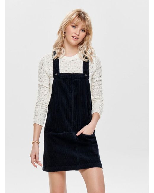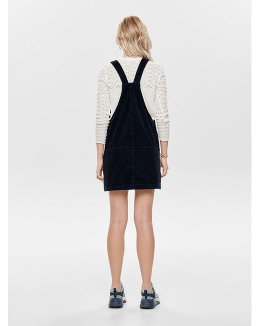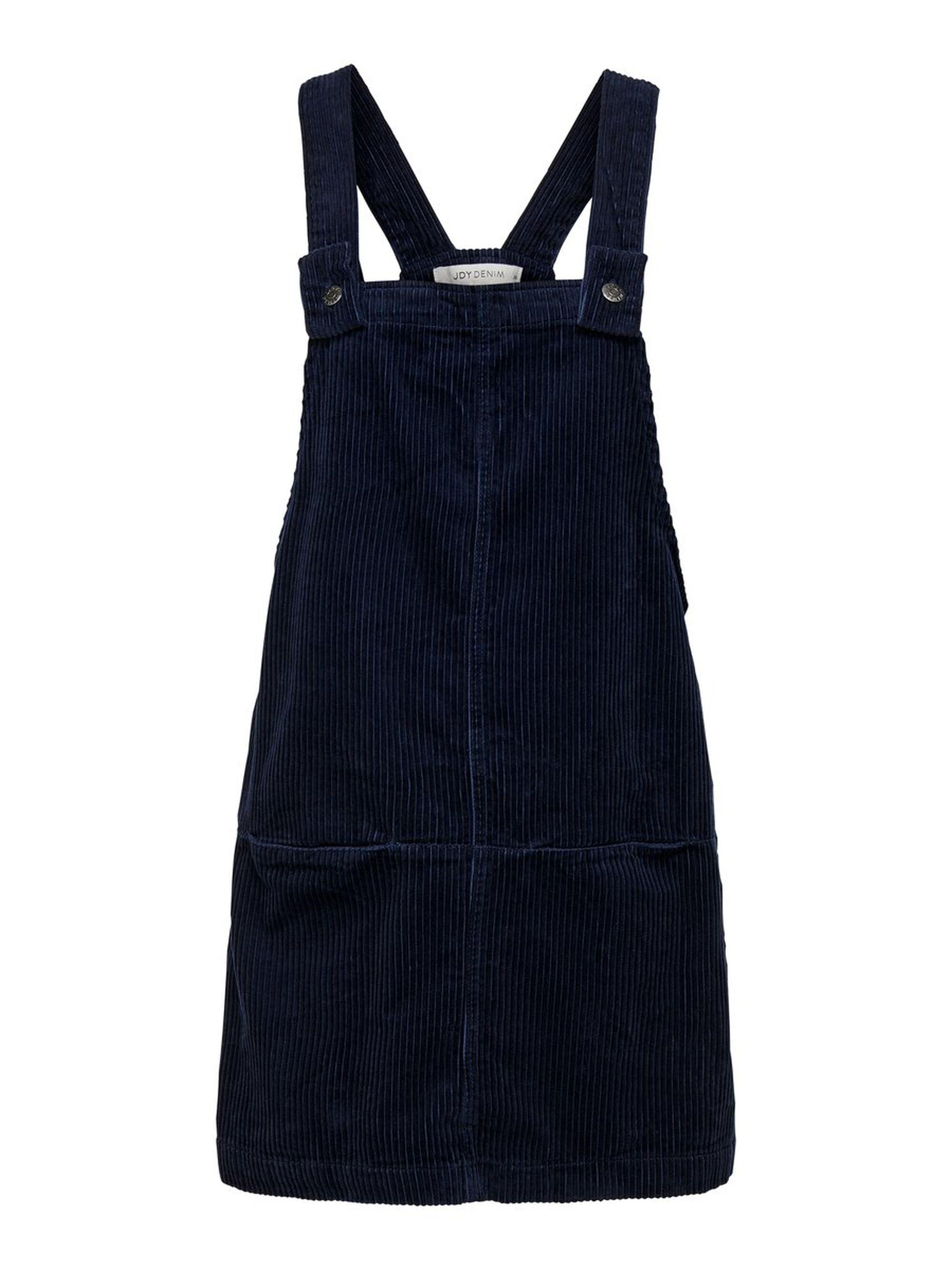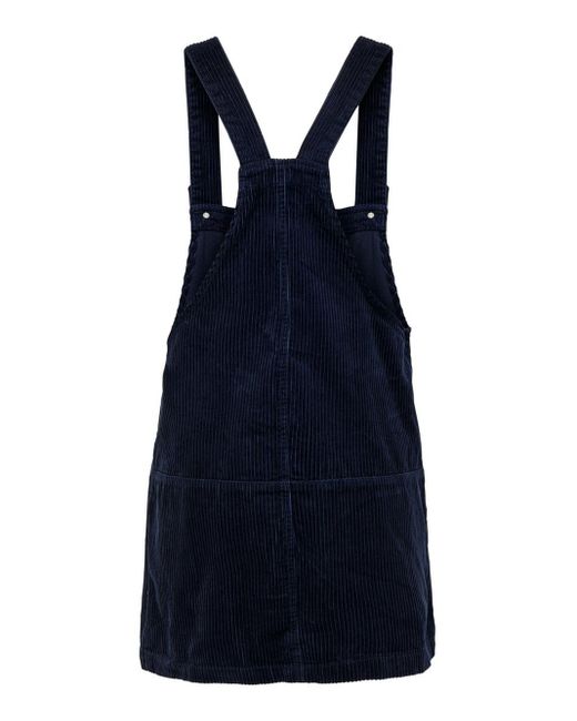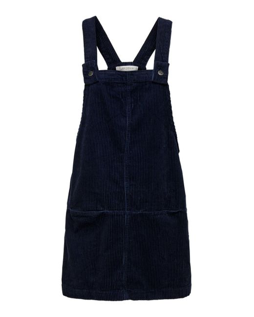 Tuinbroekjurk van JACQUELINE de YONG. Van corduroy. 2 open zakken aan de voorkant. Lengte: 69 cm in maat 38. Het model draagt maat 36. Kleur: blauw