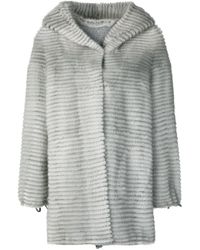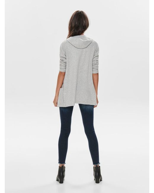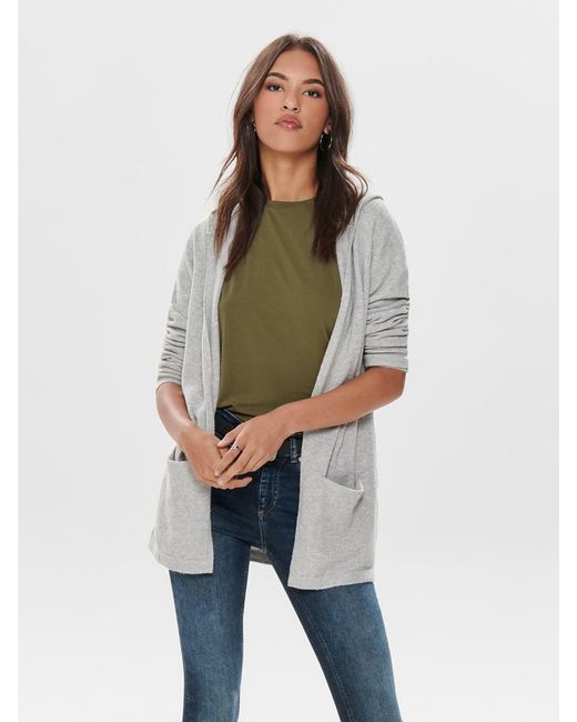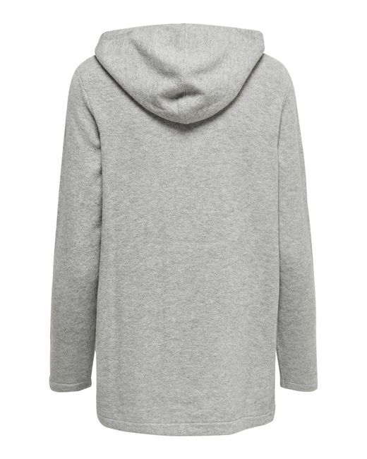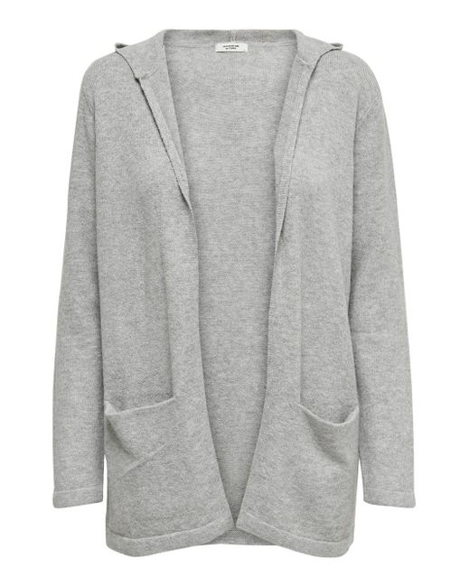 Gebreid vest met capuchon. Met 2 steekzakken aan de voorkant. Loose fit. Lengte: 72 cm in maat M. Het model draagt maat S. Kleur: grijs