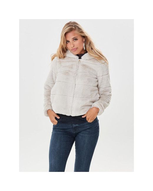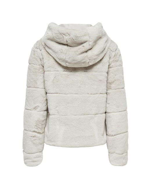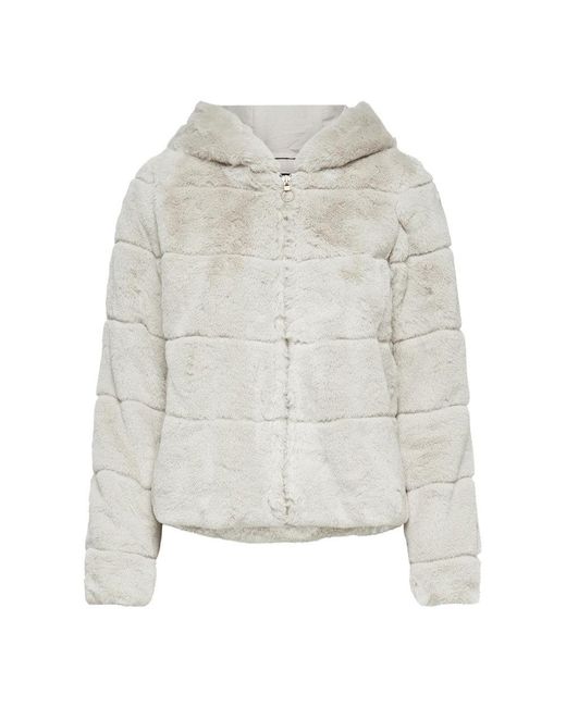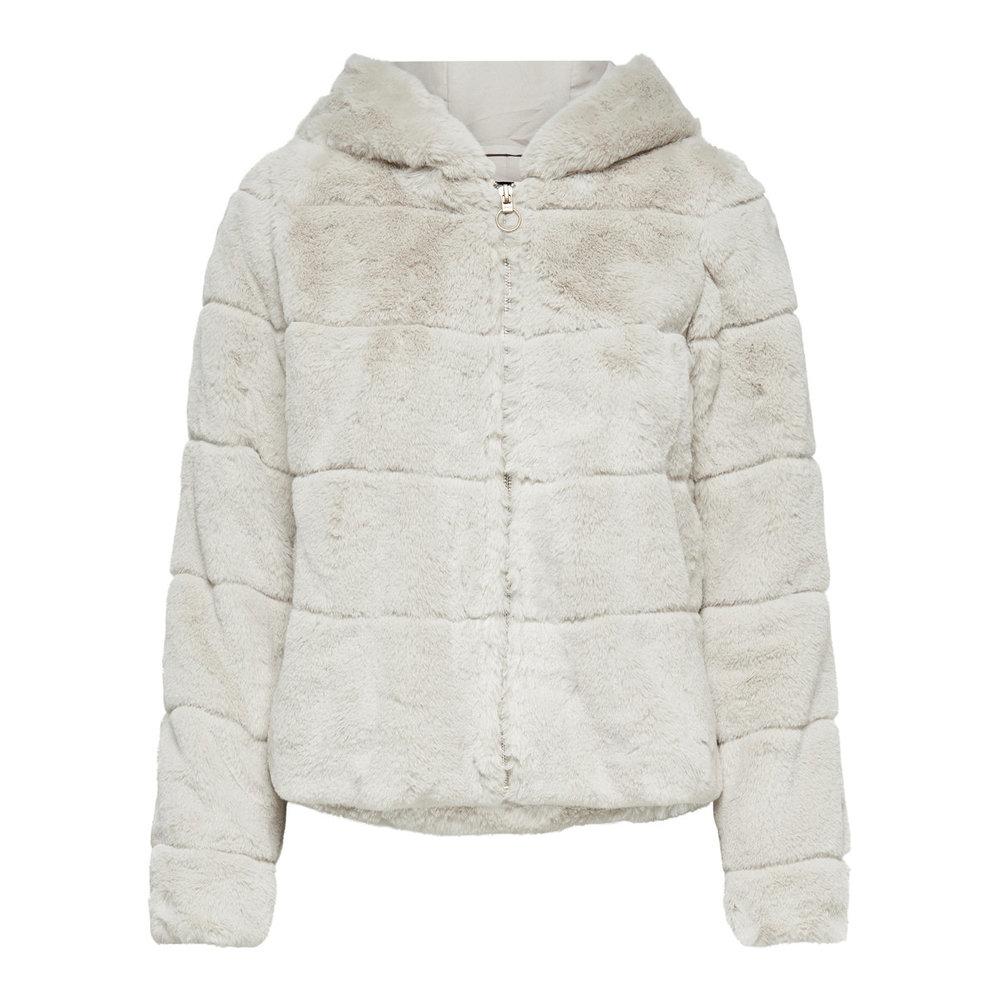 Jas met faux fur capuchon - Rits aan de voorkant - Met 2 zijzakken - Lengte: 58 cm in maat M - Het model draagt maat S 100% Polyester, Voering: 100% Polyester. Kleur: wit