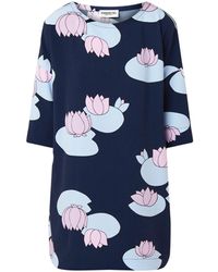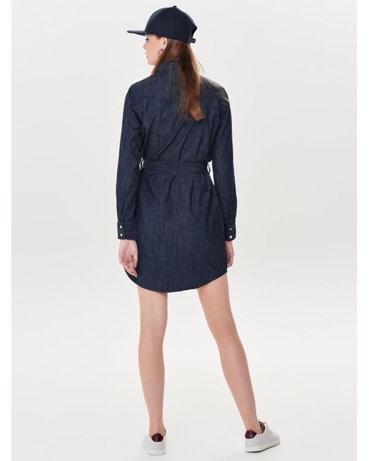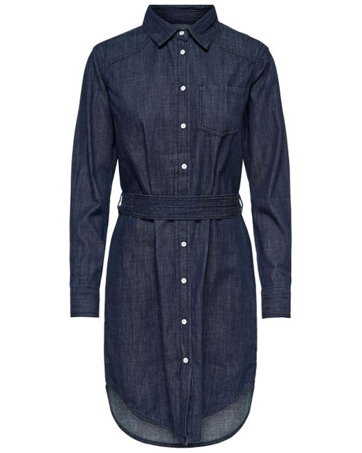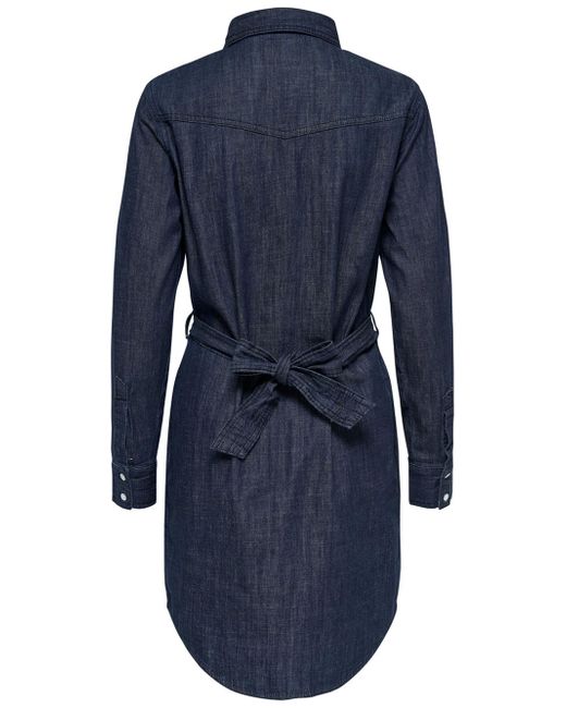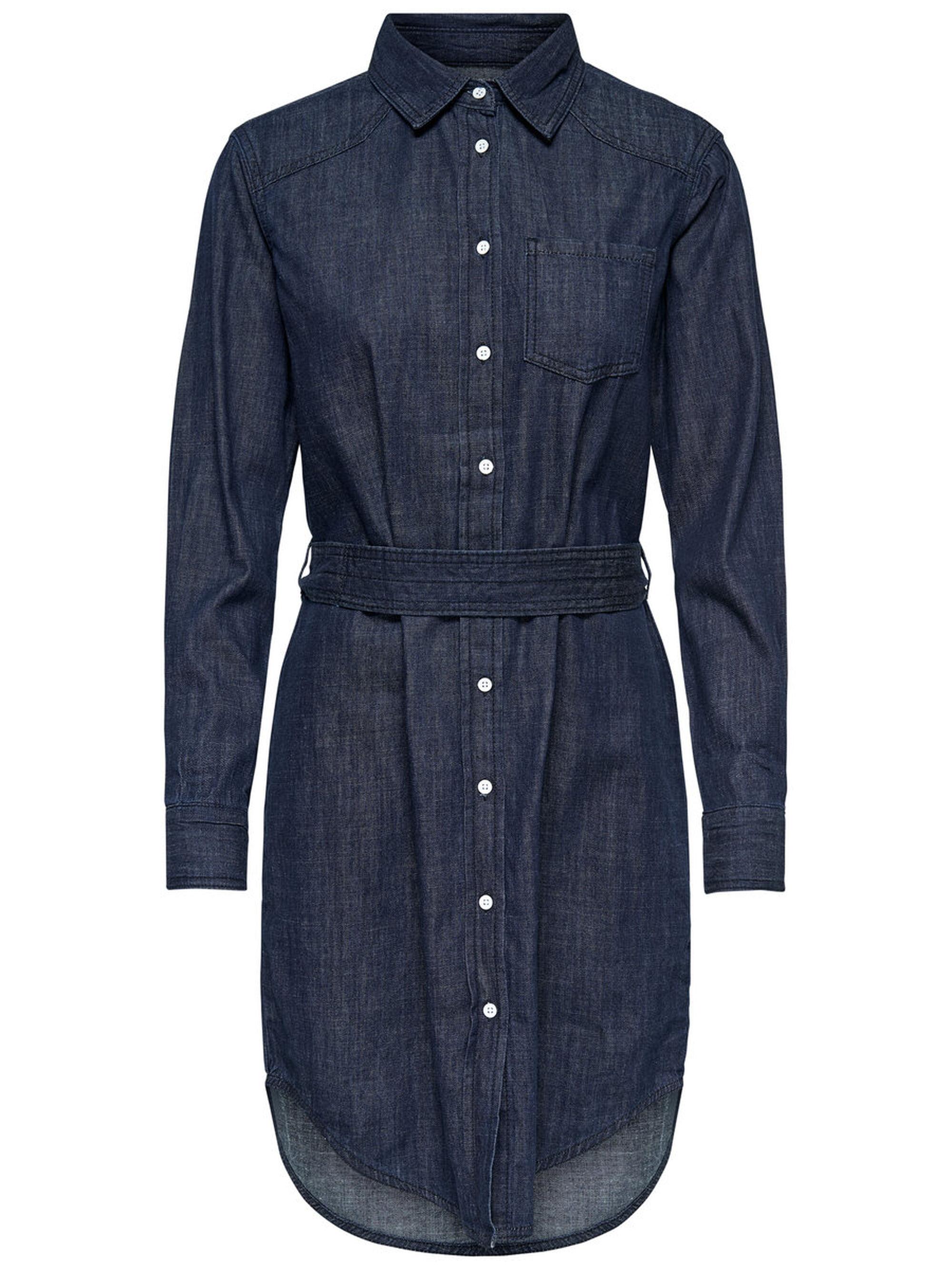 Jurk van JACQUELINE de YONG. Denim blousejurk. Lange mouwen. Knoopsluiting aan de voorkant. Knoopriem in de taille. 1 knoop onderaan de mouwen. Met 1 steekzak op de borst. Lengte: 97 cm in maat 38. Het model draagt maat 36. Kleur: blauw