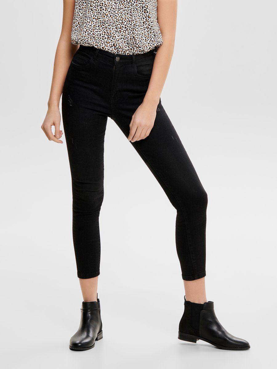 Petra hw ankle Skinny jeans - Met 5 zakken - Destroyed details - Stretchy stof - Binnenbeenlengte: 75 cm in maat 29/34 - Het model draagt maat 28/32 materiaal: 98% Katoen, 2% Elastaan. Kleur: zwart