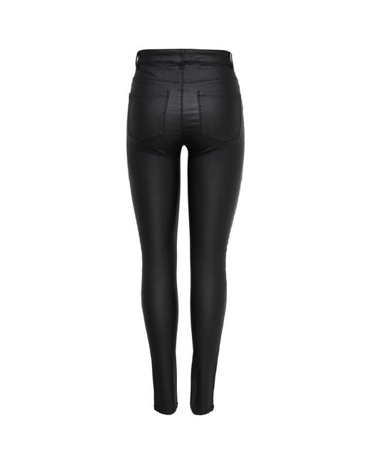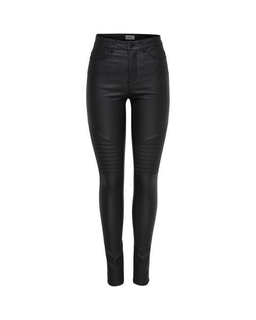 Skinny Jeans Anne Mid Waist Gecoate Biker in het zwart voor dames
