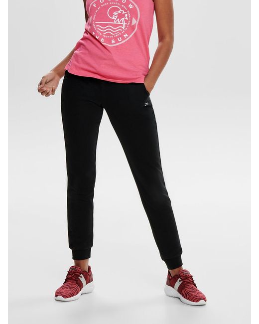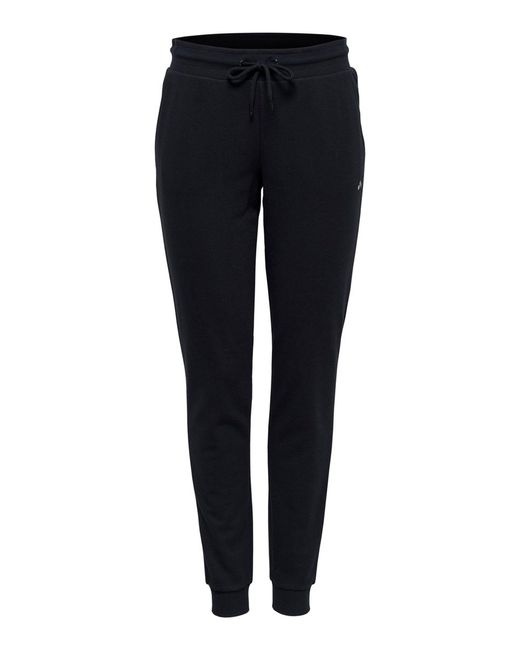 Slim fit sweatbroek van ONLY PLAY. Elastiek en trekkoord in de taille. Geribde randen. Logo aan de voor- en achterkant. Binnenbeenlengte: 78 cm in maat M. Het model draagt maat S. Kleur: zwart