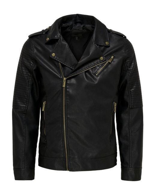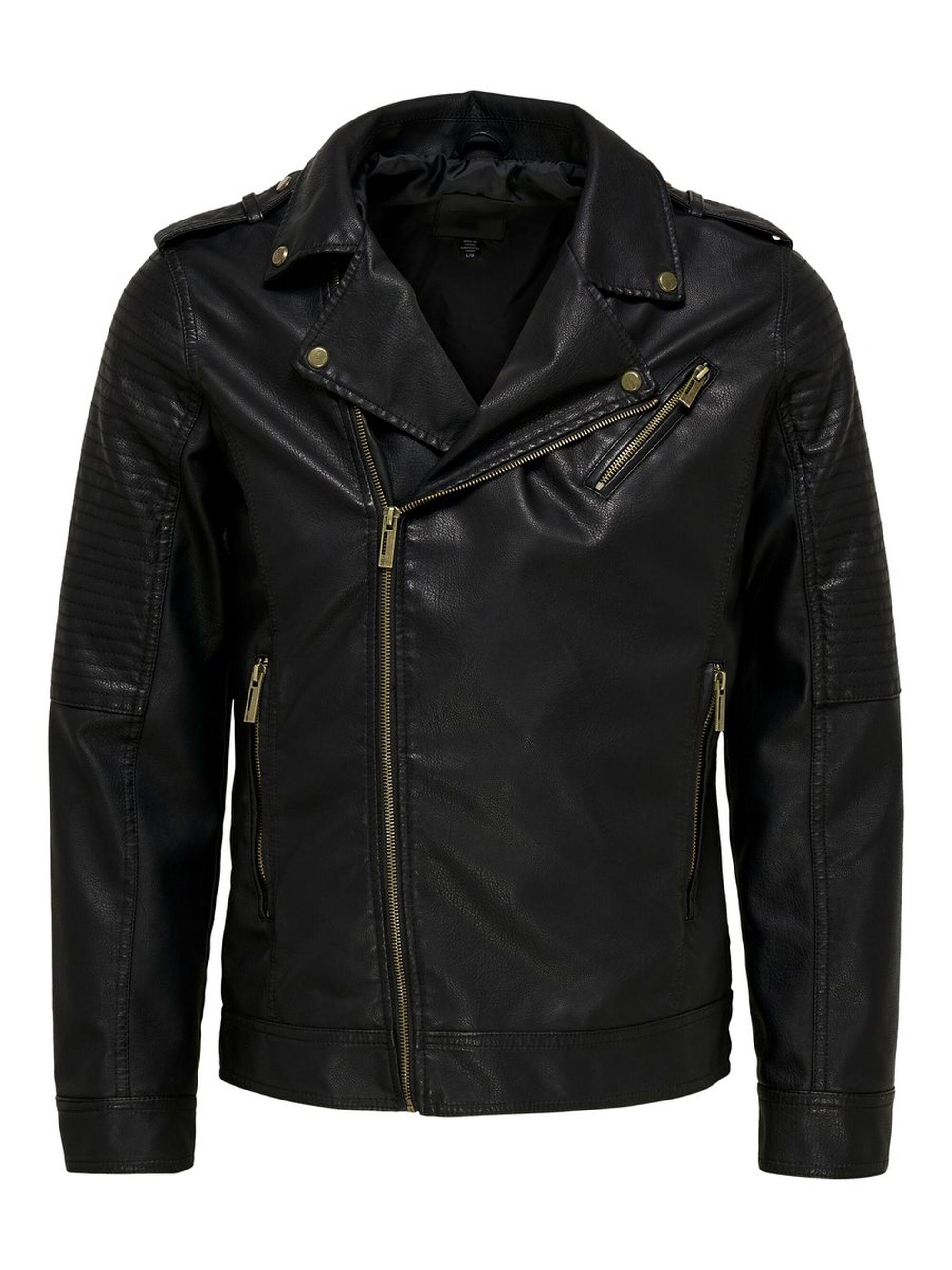Bikerjack in leatherlook - Asymmetrische rits aan de voorkant - 2 zijzakken met rits - 1 borstzak met rits - Lengte: 70 cm in maat L - Het model draagt maat L 50% Polyurethaan, 42% Polyester, 7% Katoen, 1% Viscose.