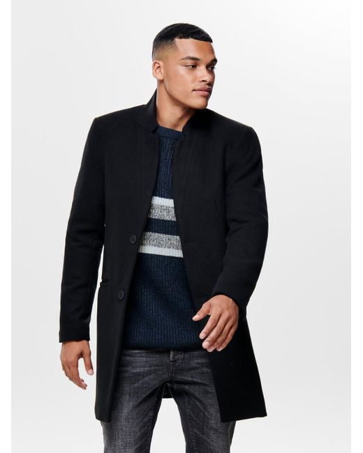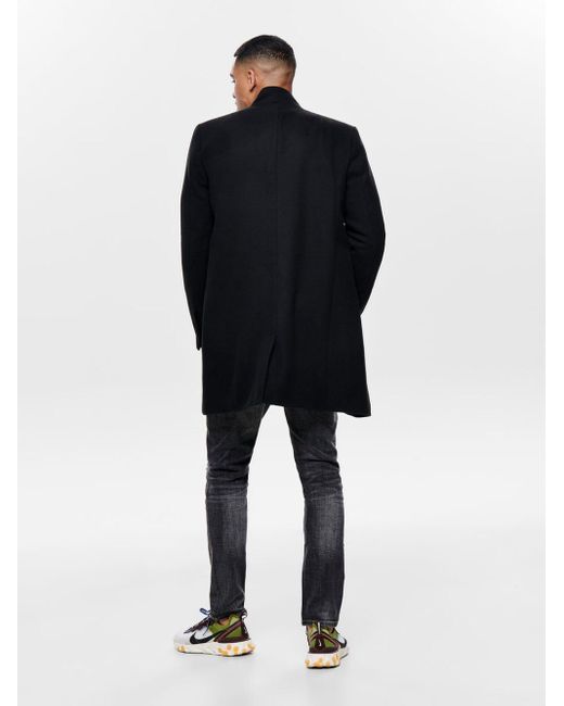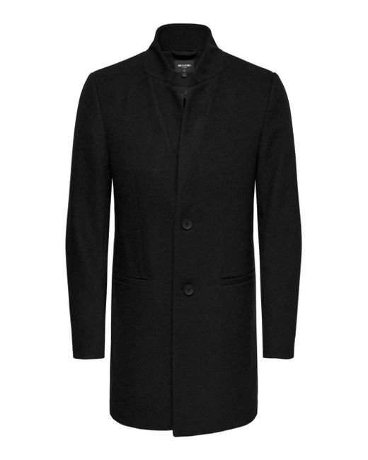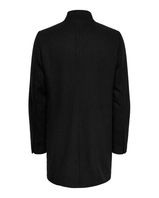 Effen gekleurde lange wollen jas. Knoopsluiting aan de voorkant. 2 zijzakken. Lengte: 96 cm in maat L. Het model draagt maat L. Kleur: zwart