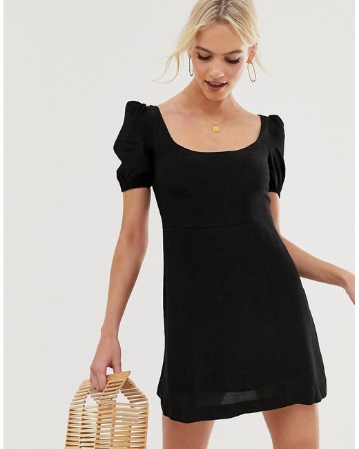 Mini-jurk Met Pofmouwen In Zwart voor dames