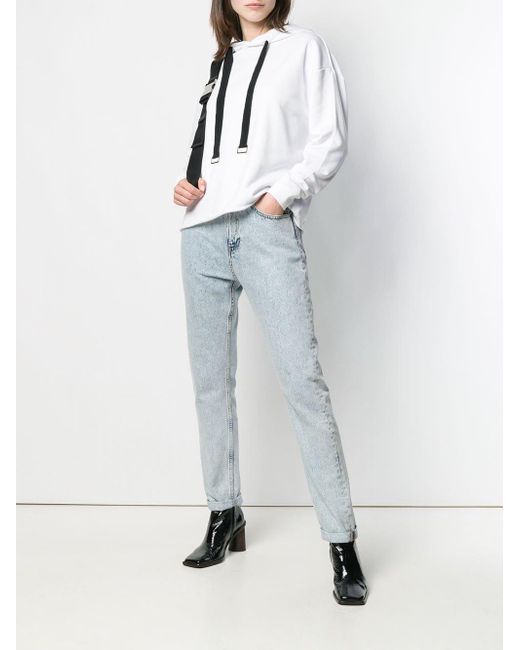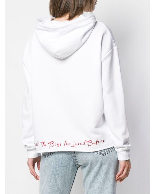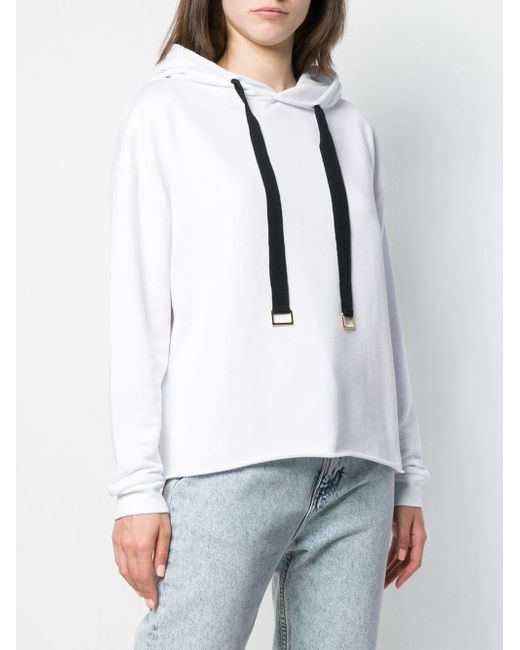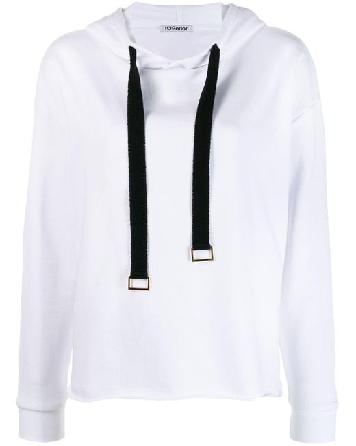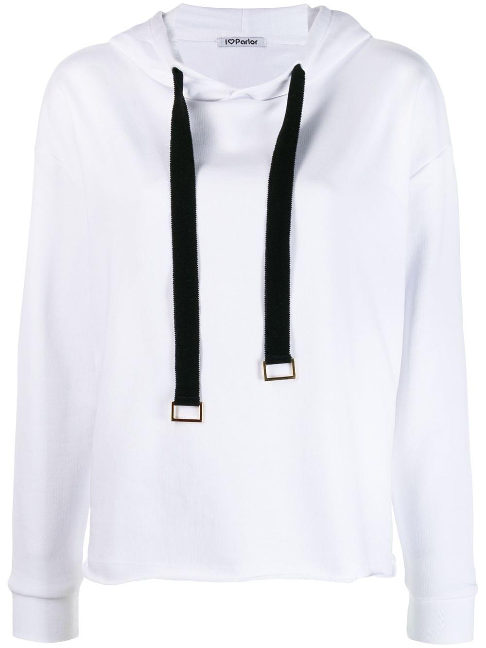 White organic cotton slogan detail hoodie from PARLOR featuring a drawstring hood, dropped shoulders, long sleeves, fitted cuffs and a rolled hem. Kleur: wit