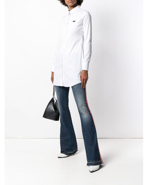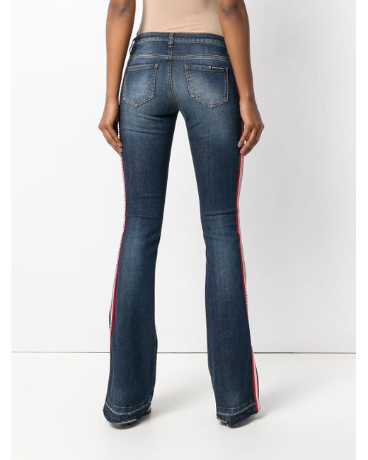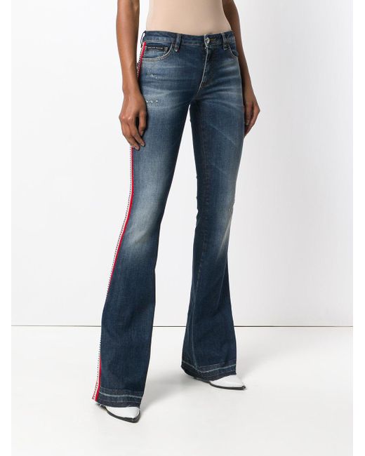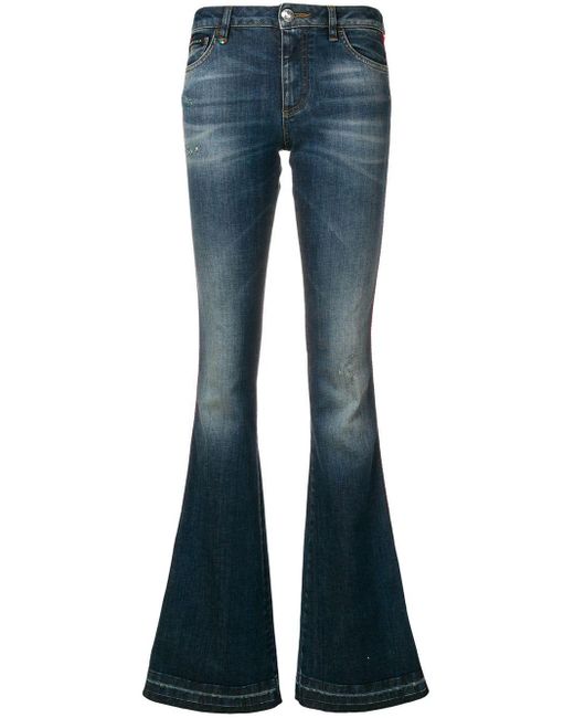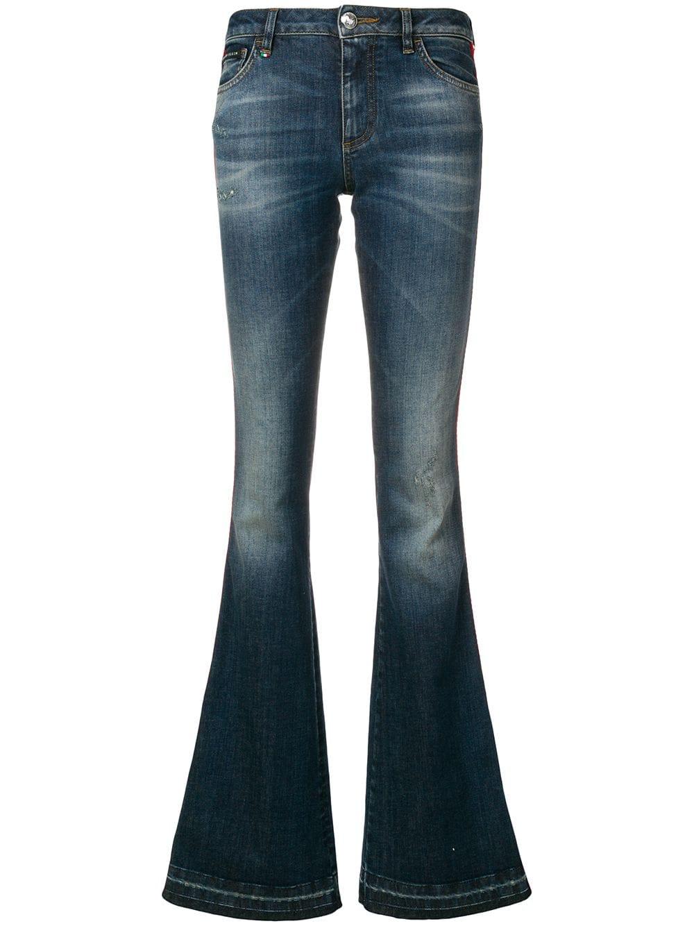 Alexa jeans van Philipp Plein voorzien van five-pocket-design, mid-rise, tailleband met riemlussen, knoop-en ritssluiting voorzijde, flared, lange lengte, streepdetail aan de zijkant, stonewash- effect en met stretch detail. Kleur: blauw