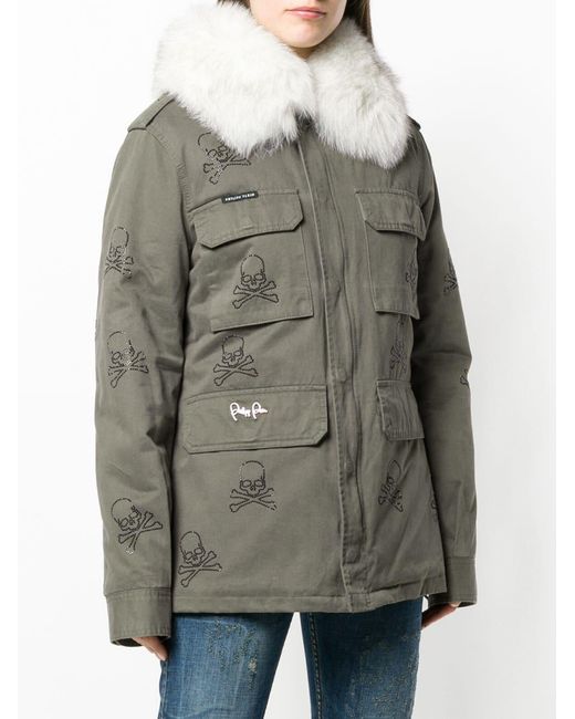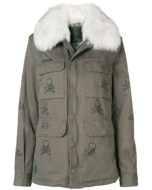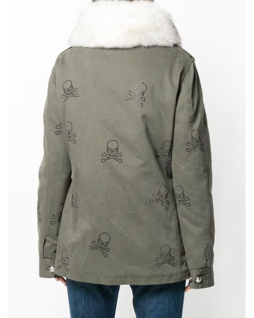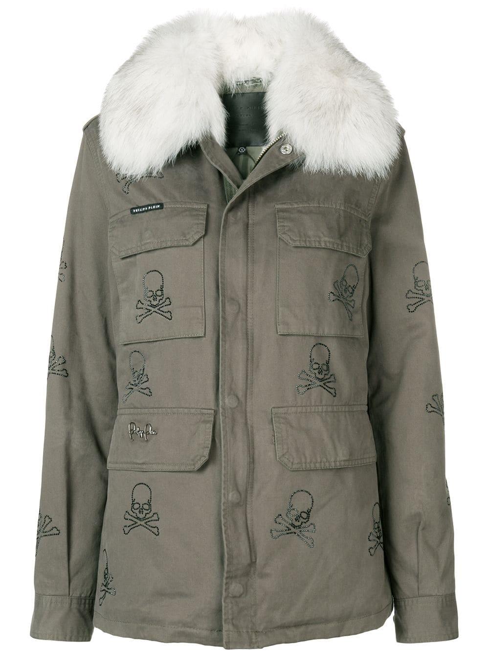 Jas verfraaid met doodskop van Philipp Plein uitgevoerd in katoen voorzien van drukknop- en ritssluiting, voorflapzakken, lange mouwen en knoopmanchetten. Dit artikel kan alleen binnen de EU�worden verzonden. Kleur: groen