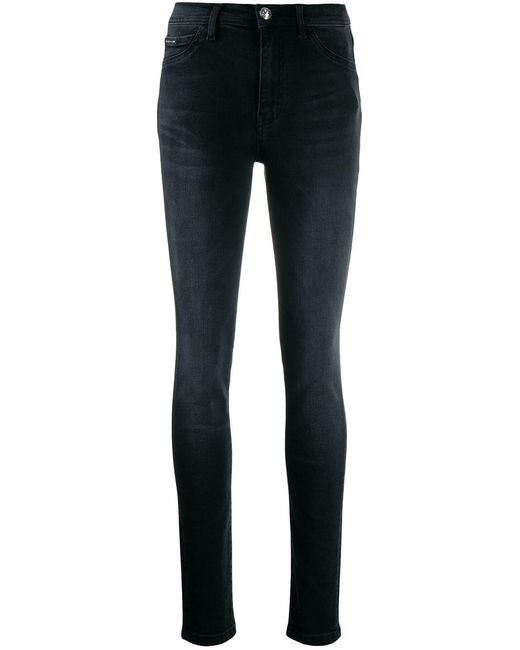 Skinny jeans van Philipp Plein voorzien van high-waist, riemlussen, five-pocket-design, skinny fit en knoop-en ritssluiting voorzijde. Kleur: zwart