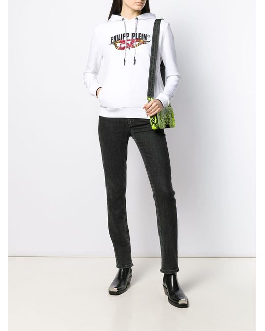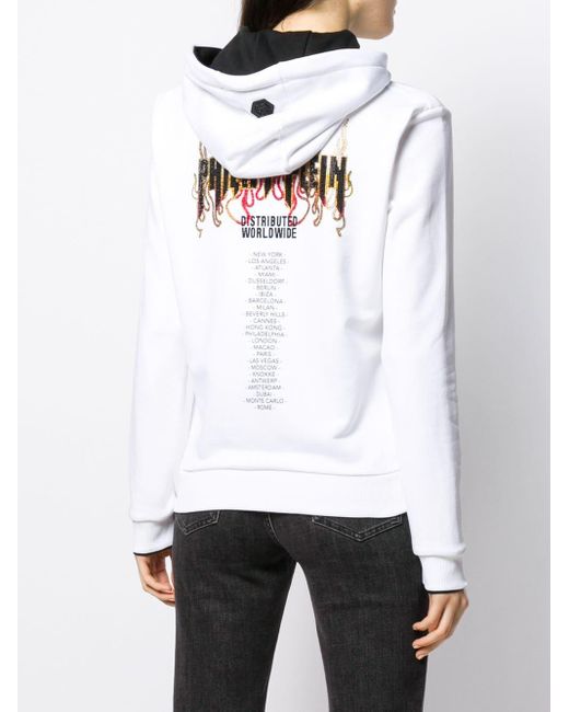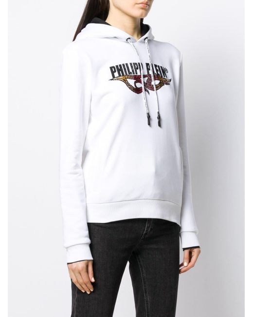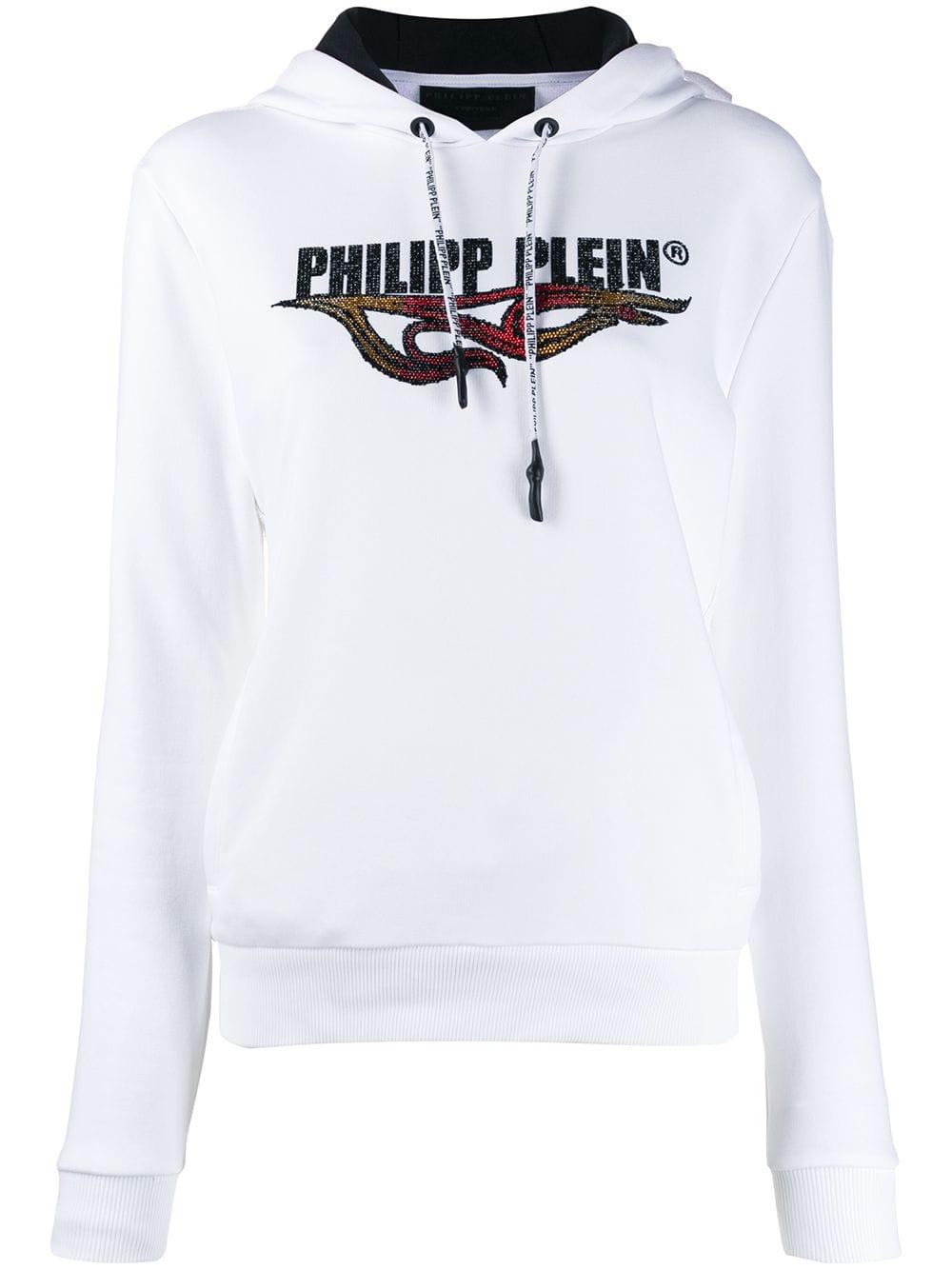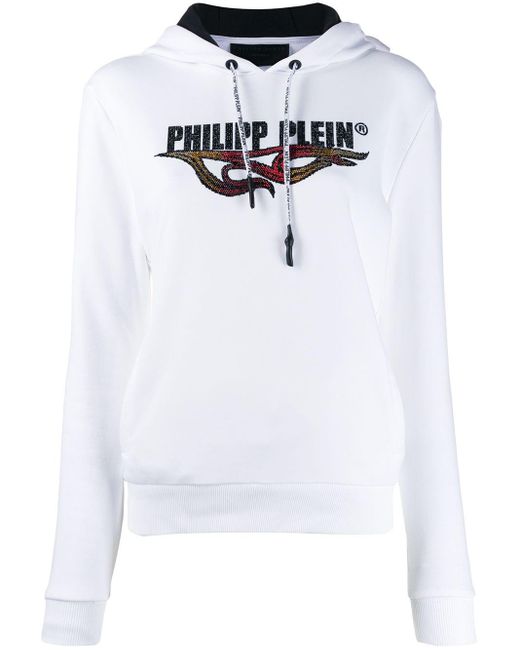 Verfraaide hoodie van Philipp Plein voorzien van lange mouwen, logo van strass, geribde zoom en manchetten, rechte zoom en relaxte pasvorm. Kleur: wit