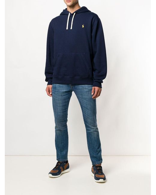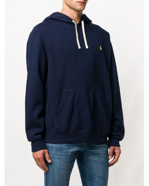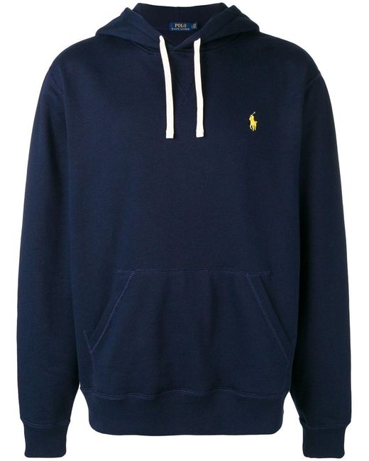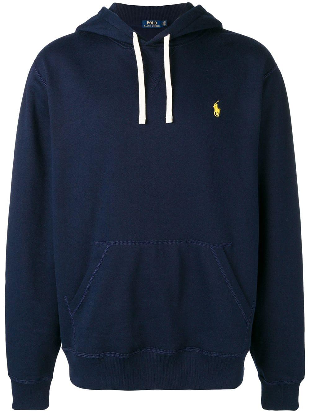Hoodie met geborduurd logo van Polo Ralph Lauren uitgevoerd in gemixt katoen voorzien van capuchon met trekkoord. Kleur: blauw