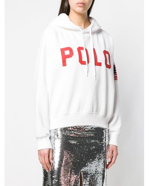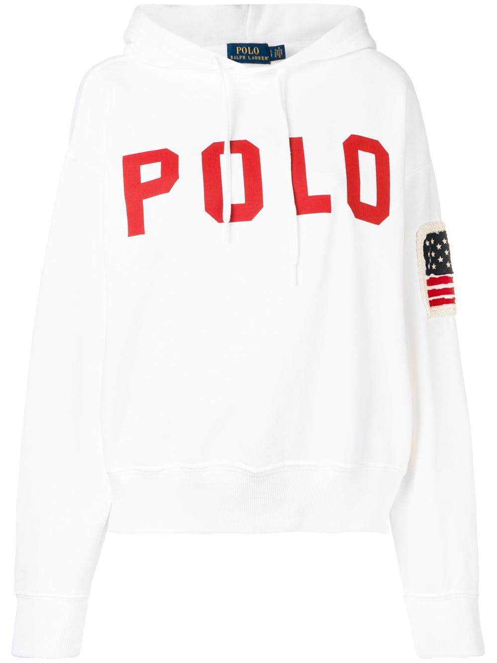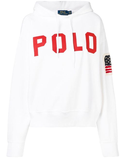 Hoodie met logoprint van Polo Ralph Lauren uitgevoerd in gemixt katoen voorzien van capuchon met trekkoorden, laag geplaatste mouwinzetten, lange mouwen, geprint logo aan voorzijde, loose fit en geribde zoom en manchetten. Kleur: wit