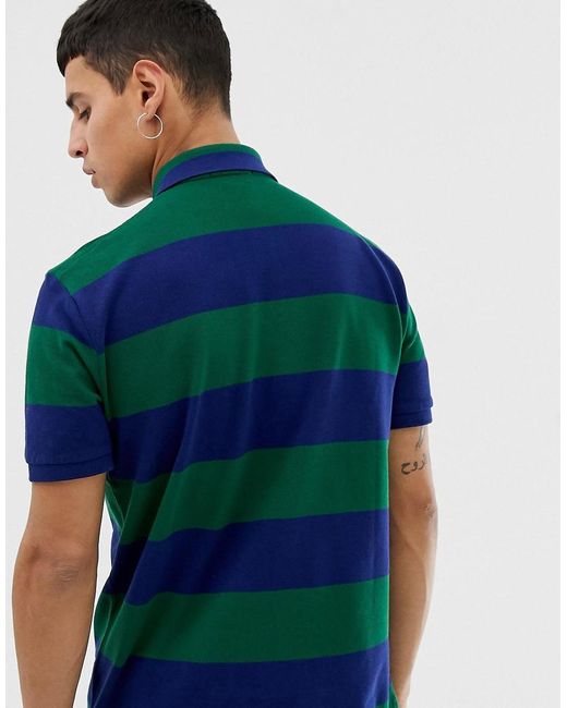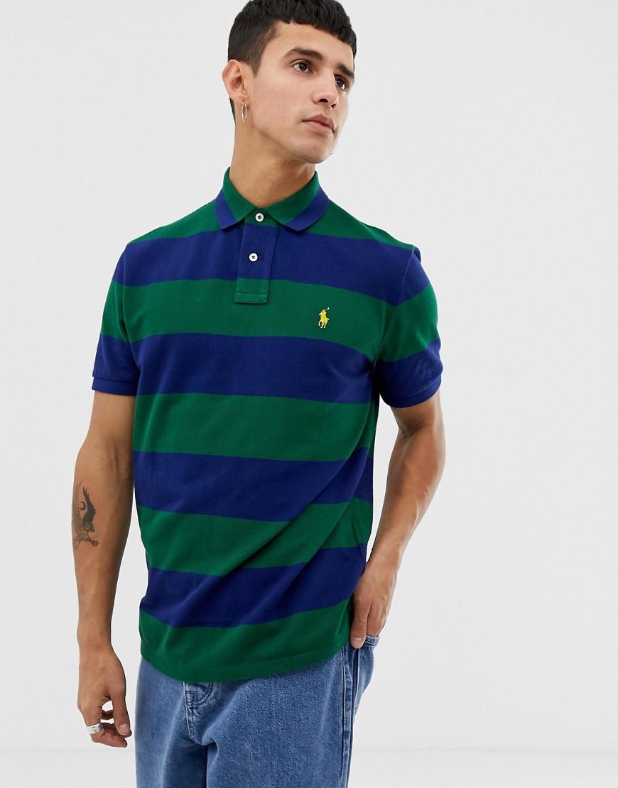 Regular-fit Piqué Polo Met Blokstrepen In Groen/marineblauw voor heren
