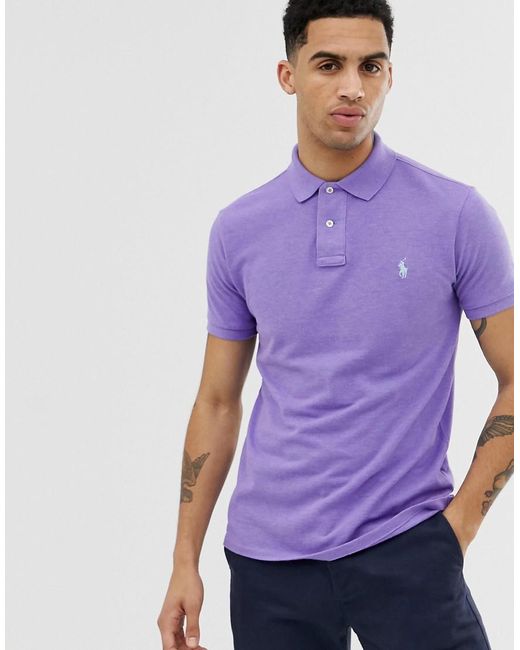 Slim-fit Piqué Polo Met Spelerslogo In Gemêleerd Lila in het paars voor heren